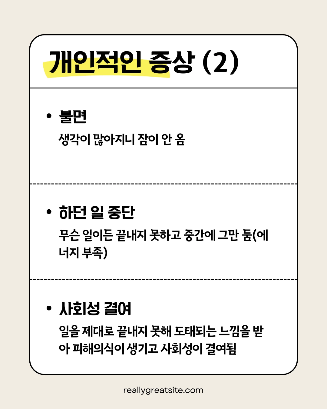 생각이 멈추지 않아 새벽까지 뒤척이며, 다음 날은 지친 채로 하루를 시작했습니다.