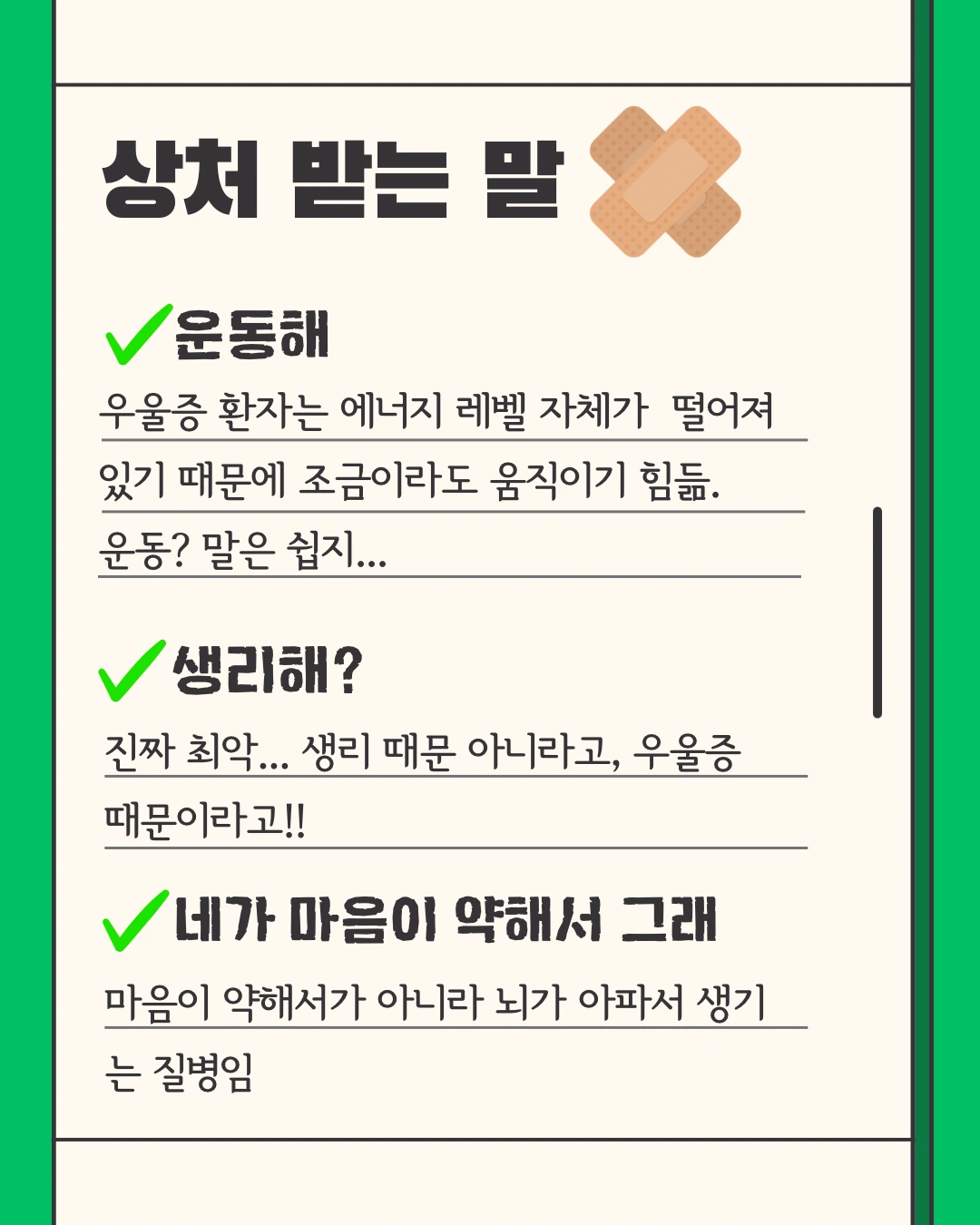 그 말은 틀리지 않았지만, 우울증 상태에선 현실적이지 않다.
