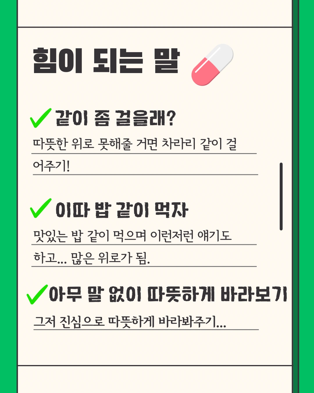 “내가 네 옆에 있어줄게”라는 마음만 전해도 충분하다.