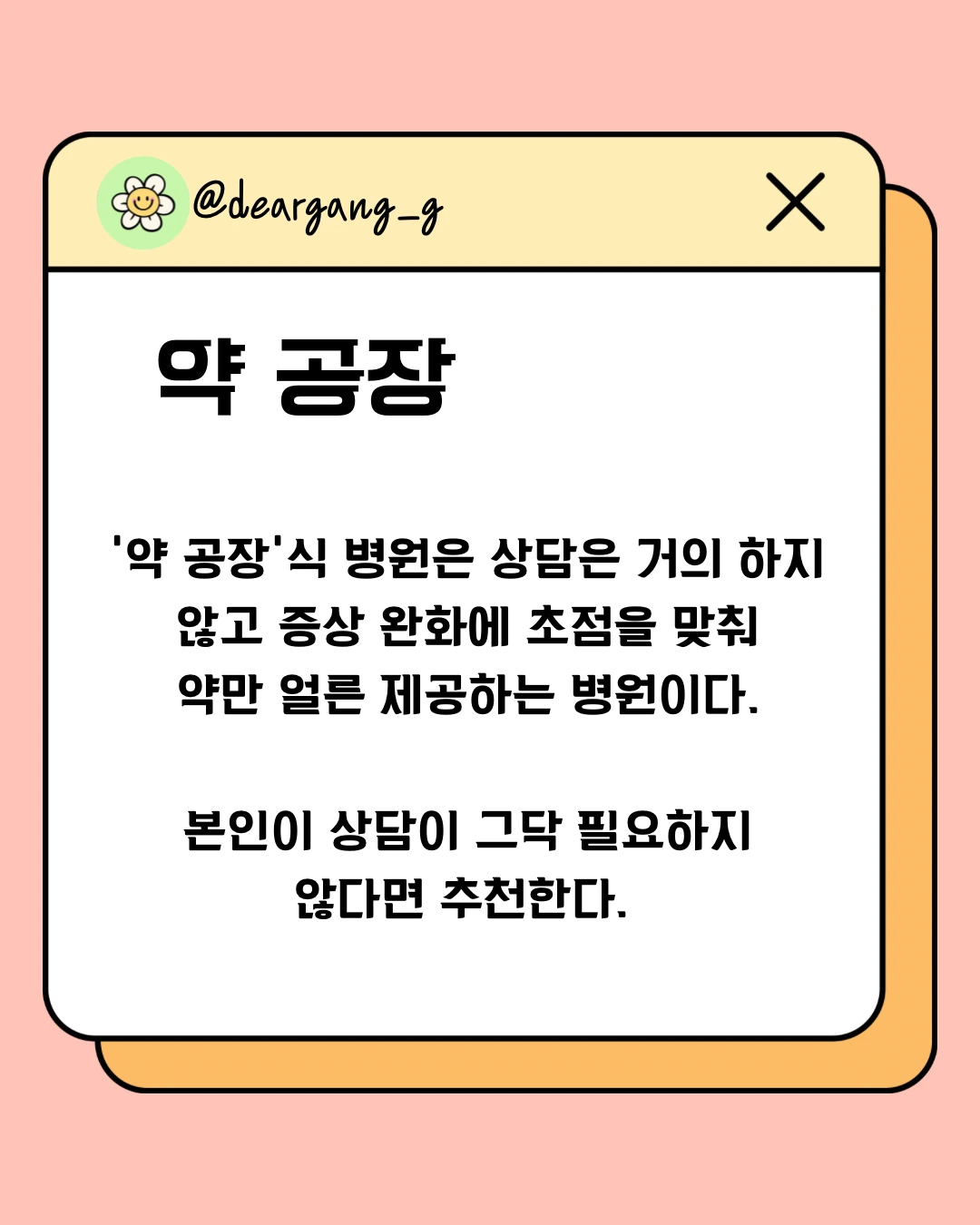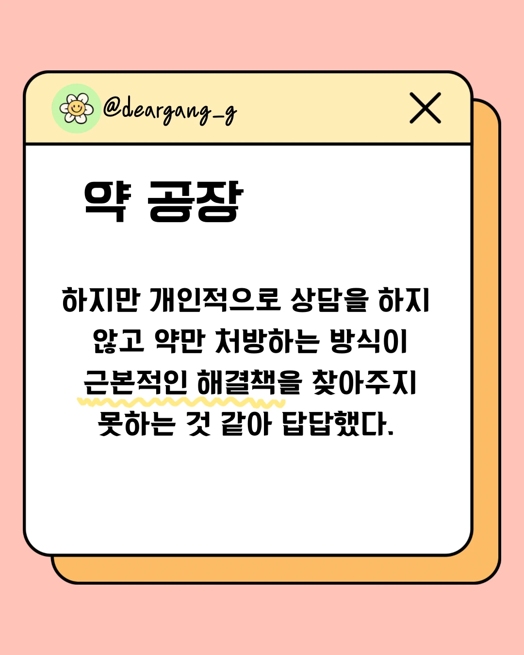 하지만 개인적으로는 상담 없이 약만 처방하는 방식이