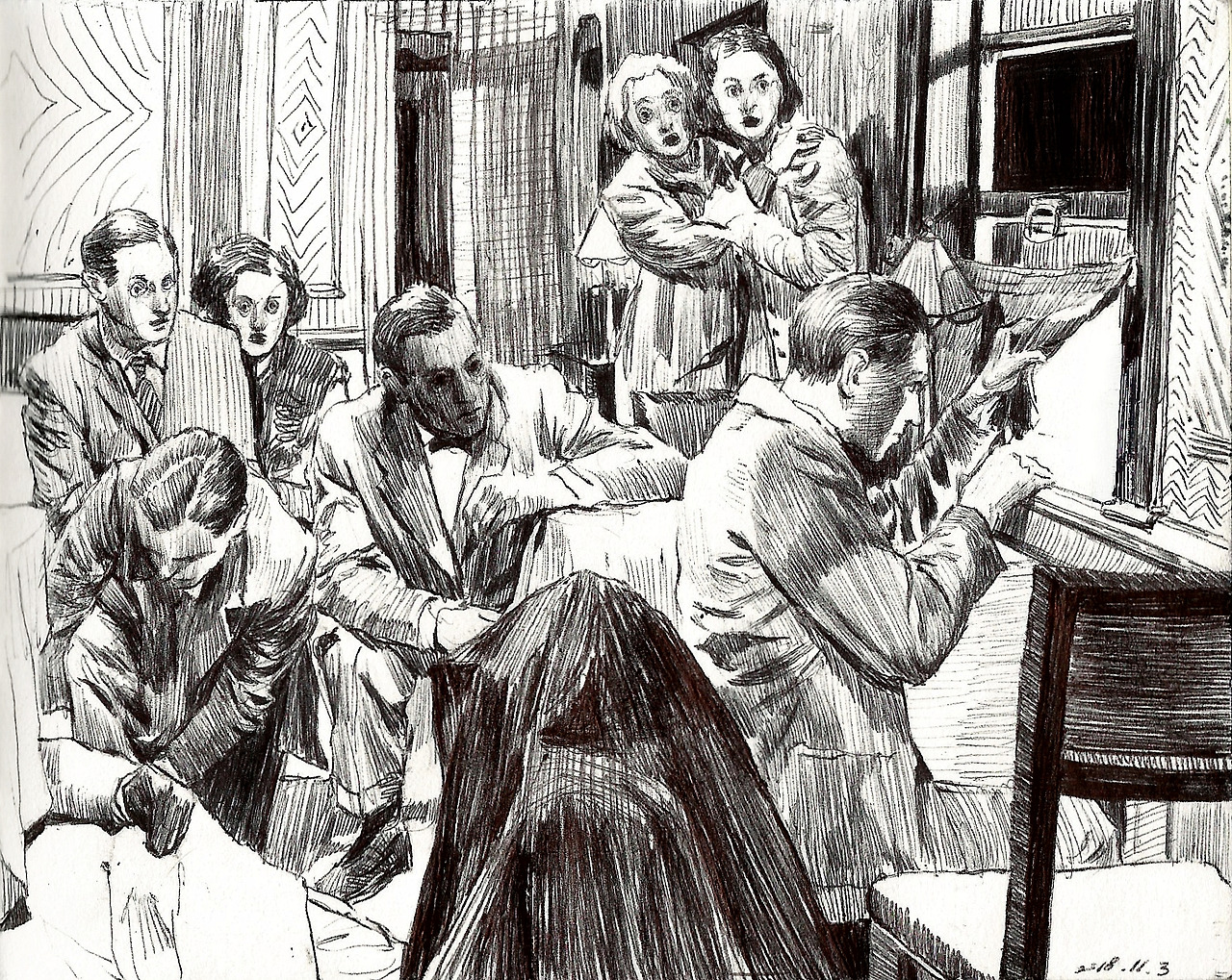 창 밖을 보던 배우는 연극을 그만두겠다고 이야기했다. 연출가는 왜 그런지에 대해 물어봤고 더 이상 창밖을 보는 역할은 무서워서 할 수 없다고 했다. 그를 밀쳤던 경력이 많은 배우는 자신과 같은 것을 봤는지 그에게 물어봤다. 그렇다고 대답했고 자신과 같은 것을 봤는데 왜 두려워 하지는지 이해할 수 없다는 제스처를 취하고 대기실을 나갔다. 감정적인 대화들이 오가던 중 뒤에 있던 여배우는 손을 들며 다 같이 창밖을 볼 것을 제안했다. 우습다는 목소리도 나왔지만 연출가는 그 제안이 그만둔다는 배우의 생각을 이해하고 바꿀 수 있다고 생각했다.
