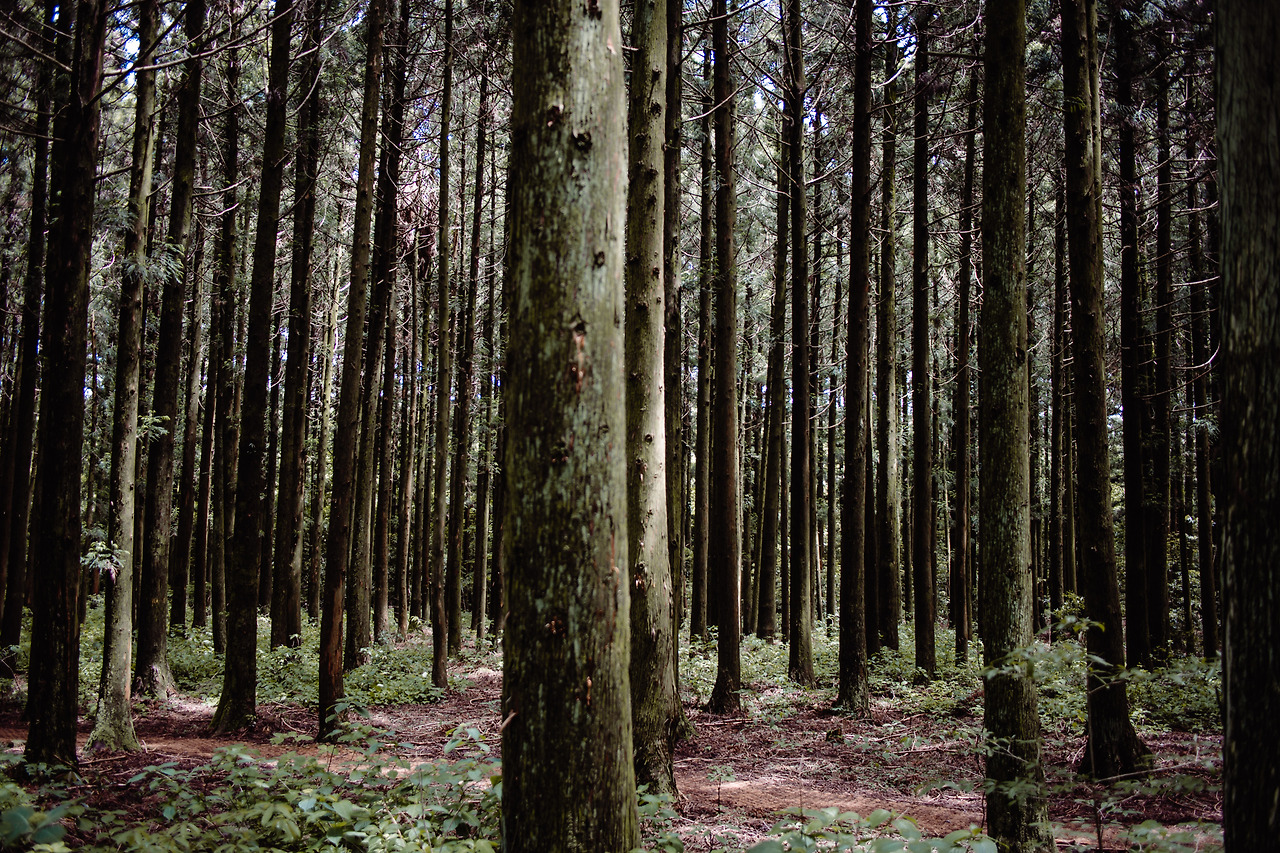 물찻오름은 사려니 숲 중간에 위치해 있어 본격적으로 오름을 오르기 전에 사려니 숲을 먼저 경험하게 된다. 사려니 숲은 제주시 봉개동에서 서귀포시 한남리까지 이어지는 (약 15km) 훌륭한 하이킹 코스이기도 하지만 워낙 유명한 곳이고, 알려질 대로 알려진 곳이라 내 마음속엔 사진 스폿 그 이상도 그 이하도 아니었다. ‘나는 오늘 멋진 숲을 다녀왔어!’를 알릴 수 있는 사진은 입구에서 충분히 찍을 수 있기 때문에 숲 깊은 곳까지 들어가 본 적도 없다. 이번에도 당연히 큰 기대 없이 물찻오름을 가기 위해서 지나치는 길일뿐이었는데 걸으면 걸을수록 묘하게 빠져들기 시작했다. 이게 숲의 매력인가? 걷는 시간 내내 수시로 변하는 울창한 숲과 그곳에서 들리는 다양한 소리, 숲의 짙은 냄새가 익숙해질 때쯤 달콤하게 다가오는 꽃 향(나중에 알아보니 때죽나무에서 피어난 꽃의 향기였다.). 별로 특별하지 않은 지극히 평범한 자연인데 숲이 뿜는 매력, 하이킹의 매력을 제대로 느낄 수 있는 코스였다. 물찻오름을 보기 전부터 이런 감동을 느끼다니 오름의 비경이 더욱 기대된다.