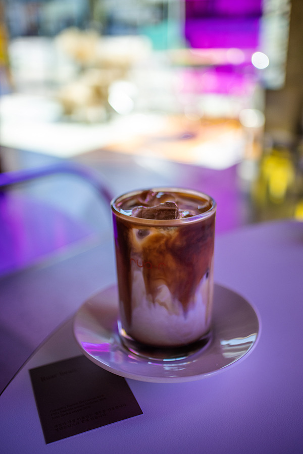 에스프레소는 부담스러워 우유를 섞은 에스프레소 밀크를 주문했다. 그리 크지 않은 투명한 잔에 담겨 나오는 게 코데인 커피로스터스의 피콜로 라떼를 생각나게 한다. 메뉴판에서는 14oz라고 적혀 있는데 ‘14oz의 양이 맞나?’라는 생각이 들 정도의 아담한 컵 크기이다.