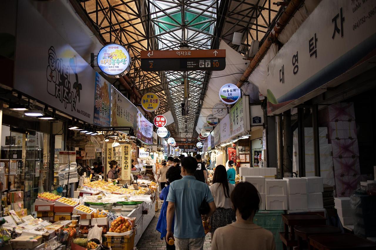 제주 관광의 1번지 동문재래시장은 제주 먹거리를 즐기고, 선물을 고르고, 야시장을 구경하고, 제주의 라이프를 경험하기에 더할 나위 없이 좋은 곳이다. 이번 도보 여행을 이곳에서 시작해야만 하는 이유이다. 지금 동문시장이 자리 잡은 터는 과거 교역이 활발히 이루어졌던 건입포 주변인데 1928년 산지항 공사 때 출토된 유물을 근거로 탐라국 시절부터 이곳이 시장이었을 것으로 추정하기도 한다.