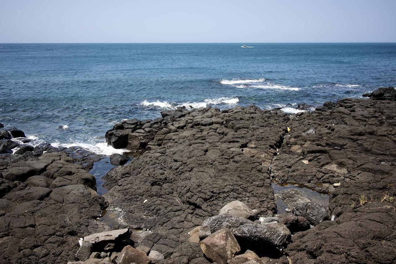 절벽 퇴적층뿐 아니라 해안에서도 화산의 흔적을 찾아볼 수 있다. 시원한 바닷길을 걷다 보면 마치 거북이 등 같은 모양을 한 검은 돌을 볼 수 있는데 어디선가에서 들어봤을 ‘주상절리’이다. 해안의 검은 바위는 용암이 식어서 생긴 용암대지이고, 액체의 용암이 식으면서 육각형으로 갈라진 형태의 절리로 굳어졌다. 제주도에서 ‘주상절리’라고 하면 웅장한 대포 주상절리를 먼저 떠올리는데 제주도 해안 곳곳에서는 이런 용암의 흔적을 쉽게 찾아볼 수 있다.