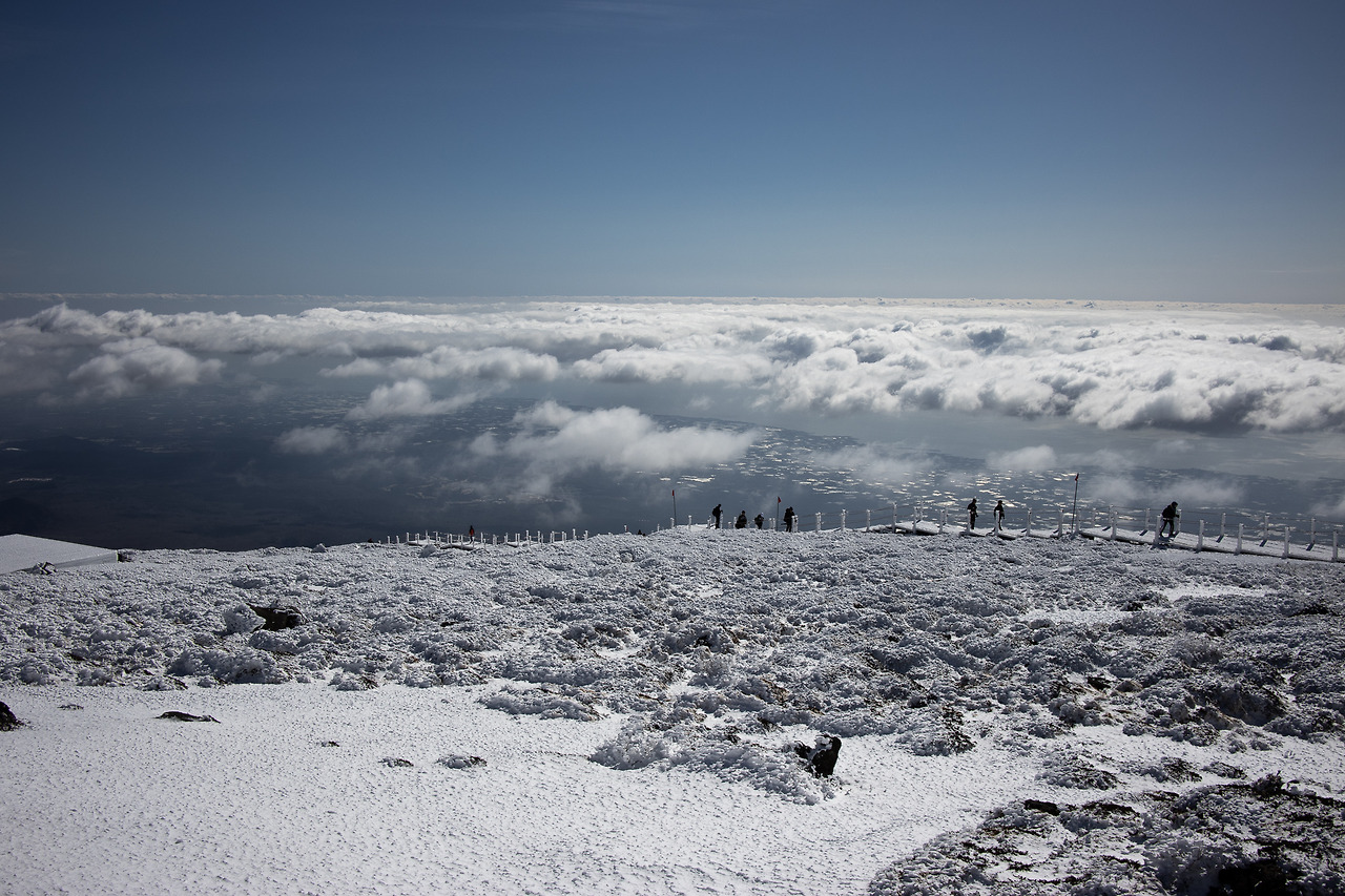 눈 쌓인 백록담, 발아래 깔려있는 구름, 그 밑에 보이는 마을, 그리고 저 멀리 보이는 바다까지 또다시 감정이 벅차오른다.(이번엔 환상적인 풍광에 대한 감정이었을 것이다.)