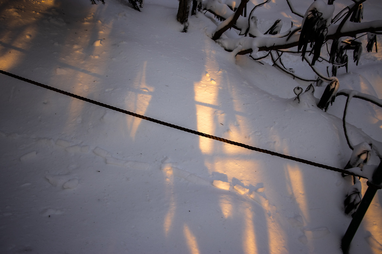 하얀 눈을 밟고 천천히 올라가는데 깜깜하던 뒤에서 빛이 느껴졌다. 여명이었다. 이 시간, 이 장소이기 때문에 볼 수 있는 주황색 여명과 하얀 눈의 환상적인 대비이다.