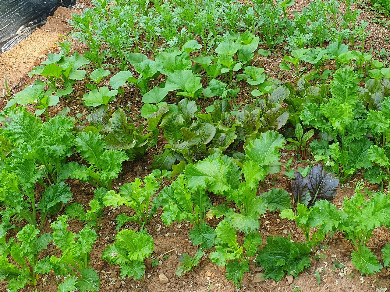 위에서부터 쑥갓, 아욱, 적상추, 겨자채 순