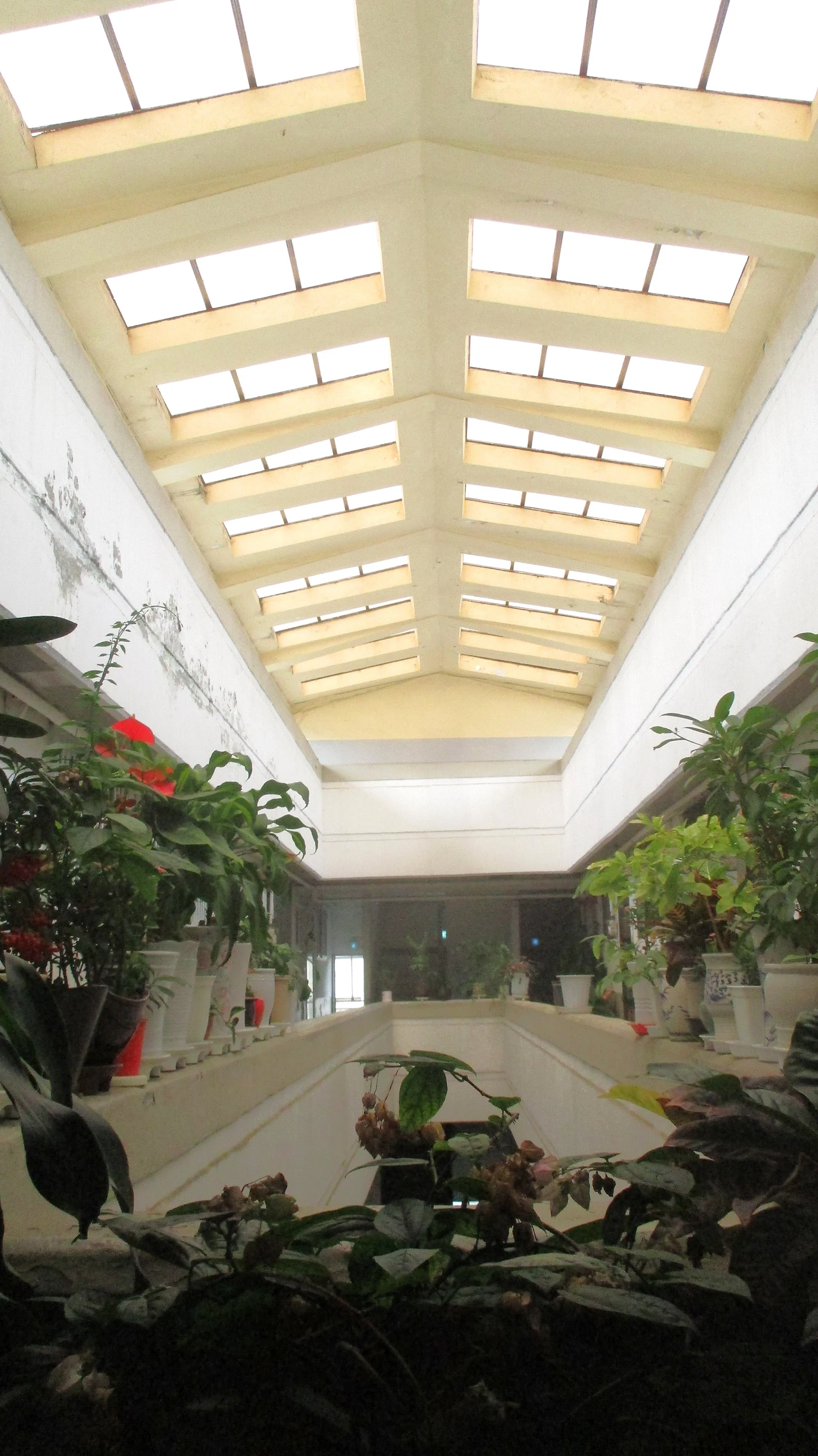 계단을 오르다 중정(中庭)을 맞딱뜨렸다. 일조(日照)의 기둥도 보였다. 이런 콘크리트의 우림에서는 상상도 못할, 일조 말이다. 화초도 일조를 받으며 파릇파릇 자라 있었다.