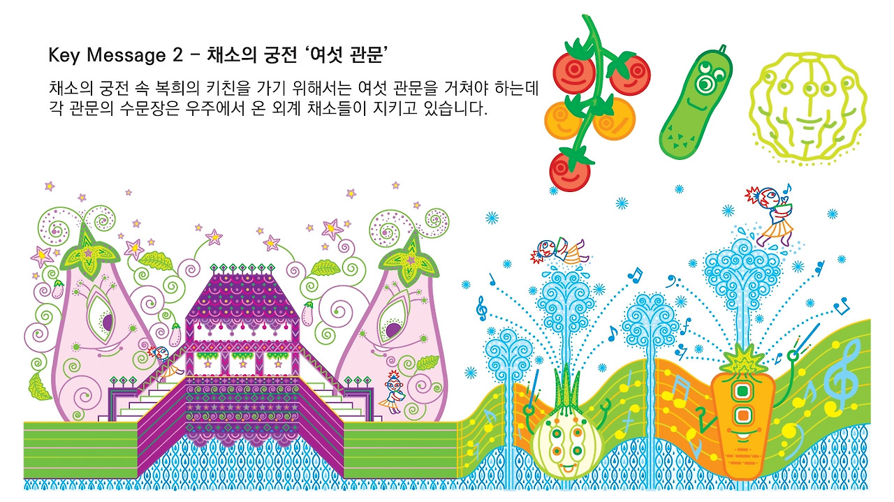 복희의 키친 속 채소를 따오는 복희는 외면의 자아를, 채소를 요리하는 복희는 내면의 자아입니다..