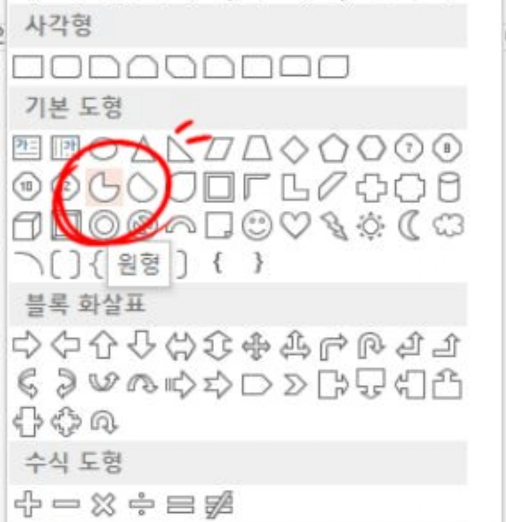 기본도형에서 원형을 삽입하라고 했다.