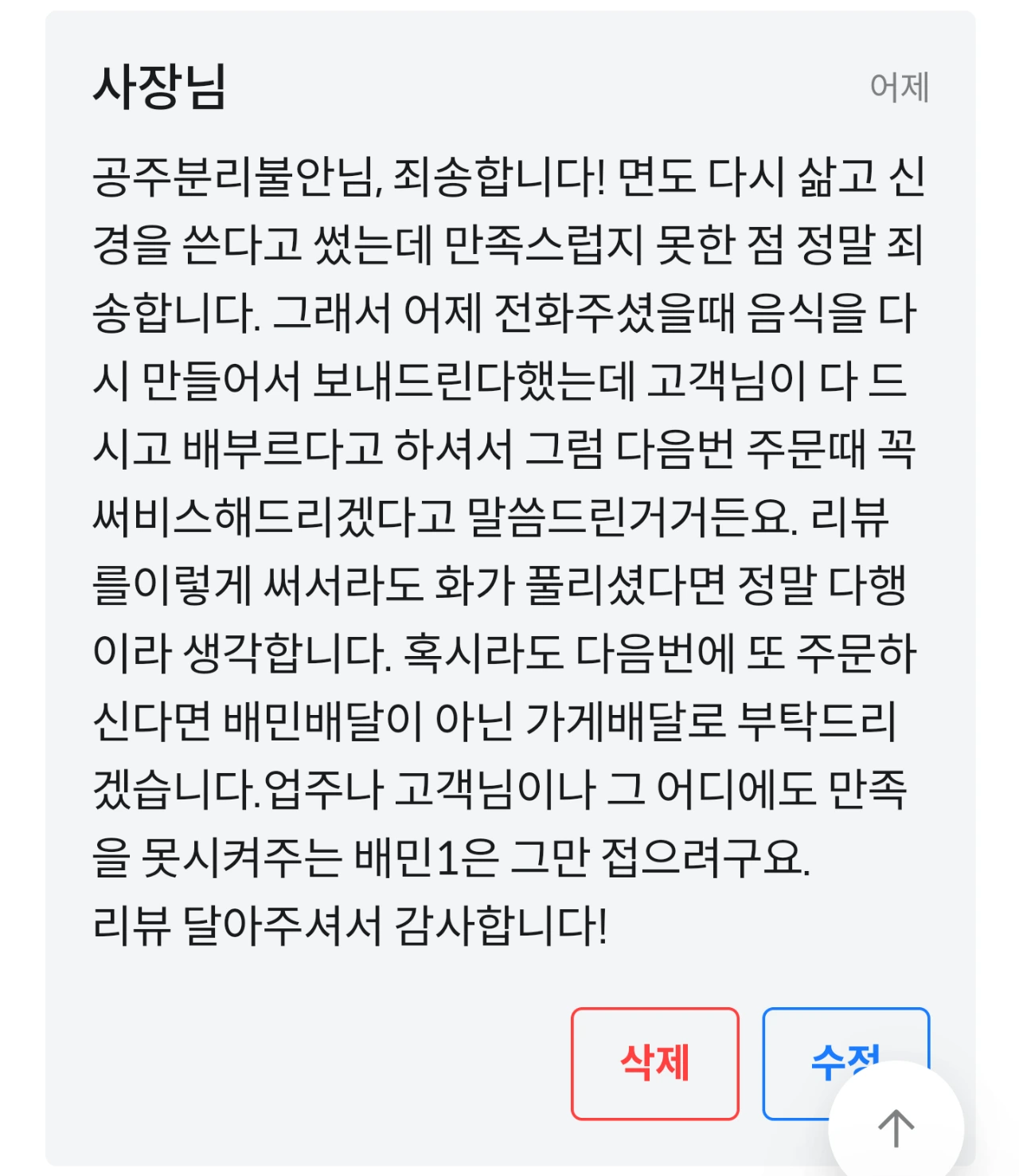 출근준비하는 내게 득달같이 전화해서 당장 그 리뷰 삭제하라고 했다.