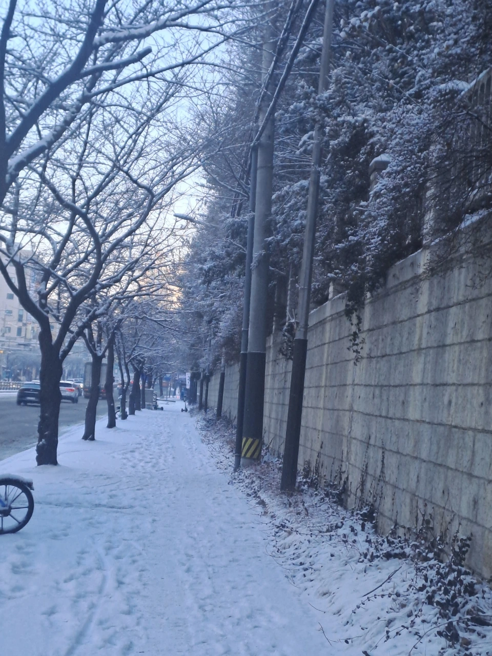 매일 다른 출근룩을 선보이는 셤니 오늘의 패션은 꽝이었다. 어두운 자주색계열의 코트가 전혀 어울리지 않는다.