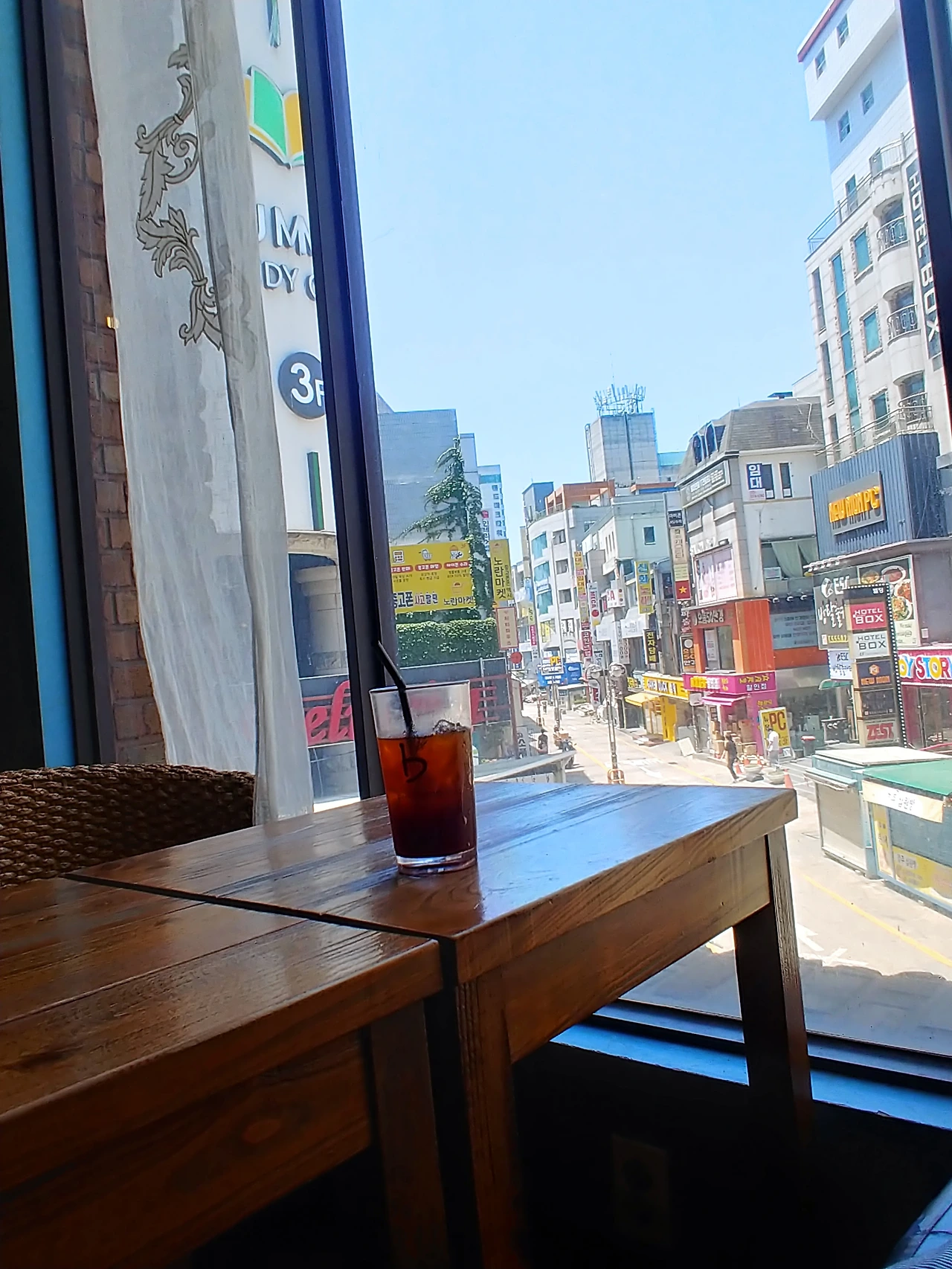 그 고즈넉함이 나도 반가워 허둥지둥 창가 쪽 자리에 앉다가 그만 커피를 줄줄 흘리고 만다.