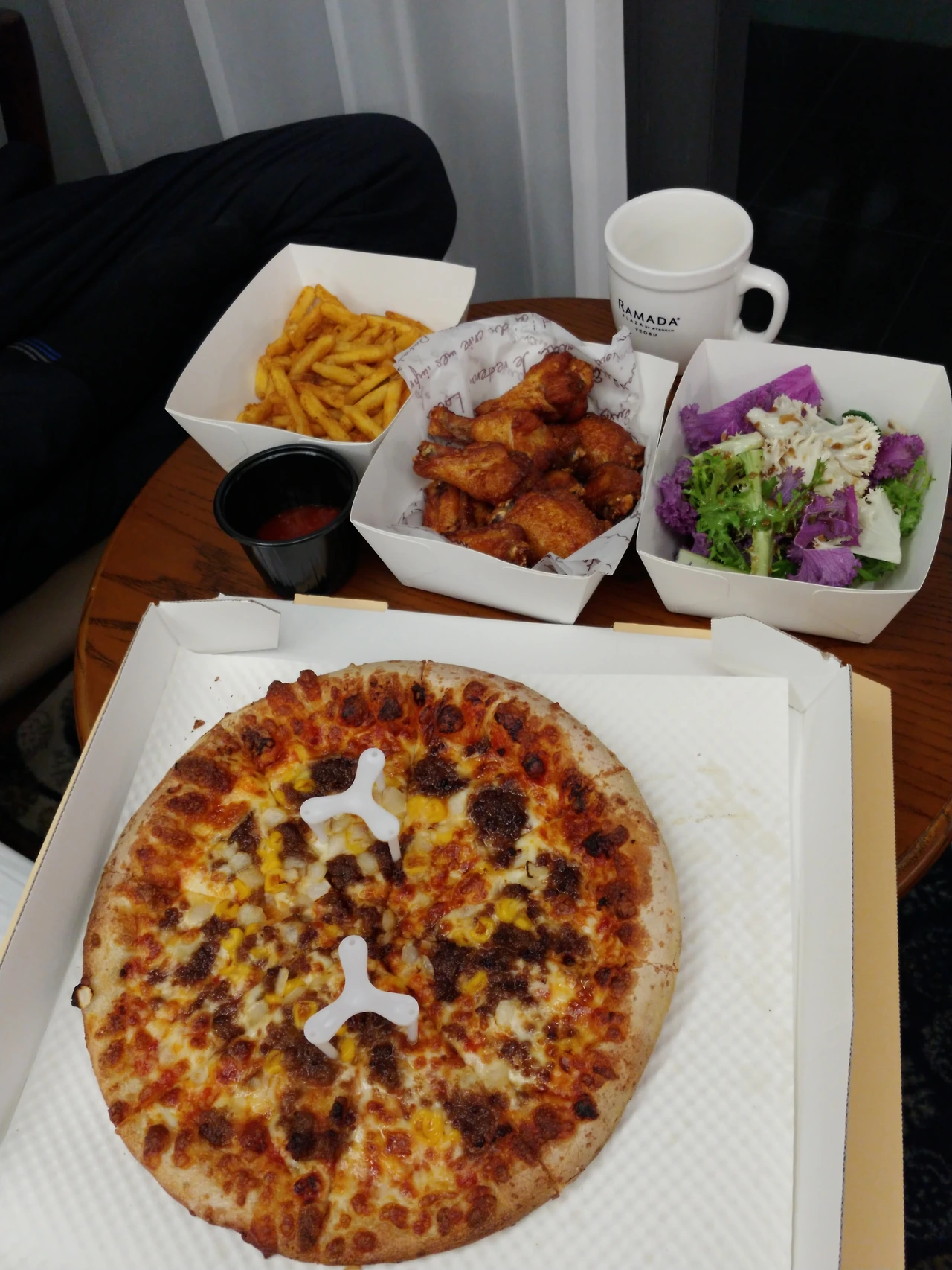 메뉴가 맘에 들지 않아 시큰둥하던 아이들은 생각 외로 잘 먹어주었고 나와 남편은 해물의 신선도에 실망을 했다. 먹는 둥 마는 둥 했던 남편은 결국 숙소로 돌아와 배가 출출하다며 룸서비스로 피자를 주문했지만 그것 또한 썩 맛있어하는 표정은 아니었다. 아이들만 잔뜩 신이 났다.