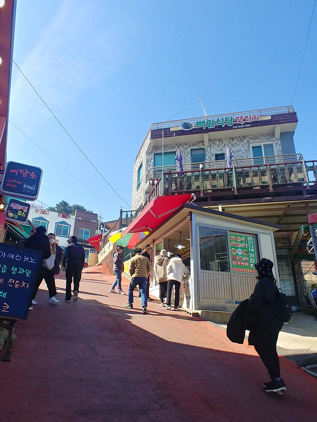 가파른 길 양쪽으로 막걸리와 갓김치 판매하는 매장들이 즐비하다. 시식하고 가라는 친근한 아주머니들의 호객행위가 낯설지 않다.