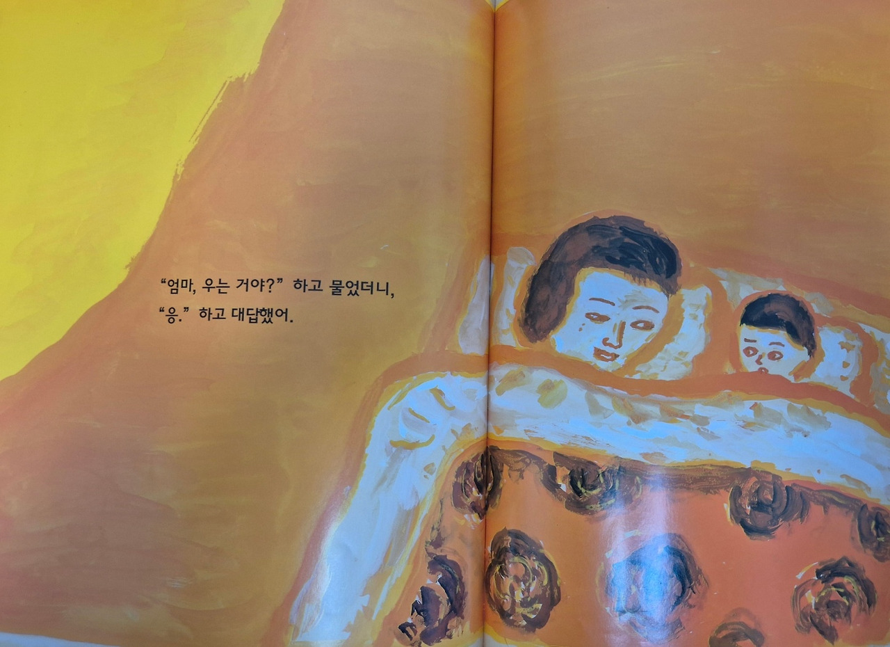 그런데 어느 날 밤 엄마 이불 속에 들어갔을 때, 엄마 눈에서 눈물이 나왔어.