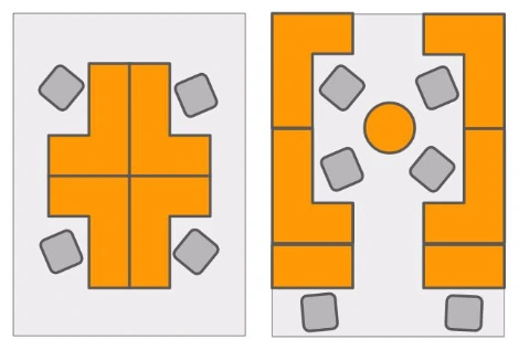 예를들어 만약 개인별 작업을 장시간 해야하고 집중해야 한다면 왼쪽 그림이 맞을지도 모른다. 하지만, 4명의 인원이 커뮤니케이션 해야하거나 개별적으로 집중해야 할 공간이라면 오른쪽이 더 나을 수 있다. 별 것 아닌 것 같아 보여도 저 두 레이아웃(layout)은 일하는 모습에서도 매우 큰 차이를 보인다.