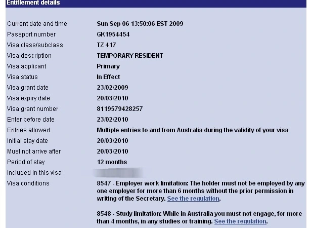 < 당시 호주 이민성에서 받은 비자승인 내역과 ANZ 은행 계좌 >