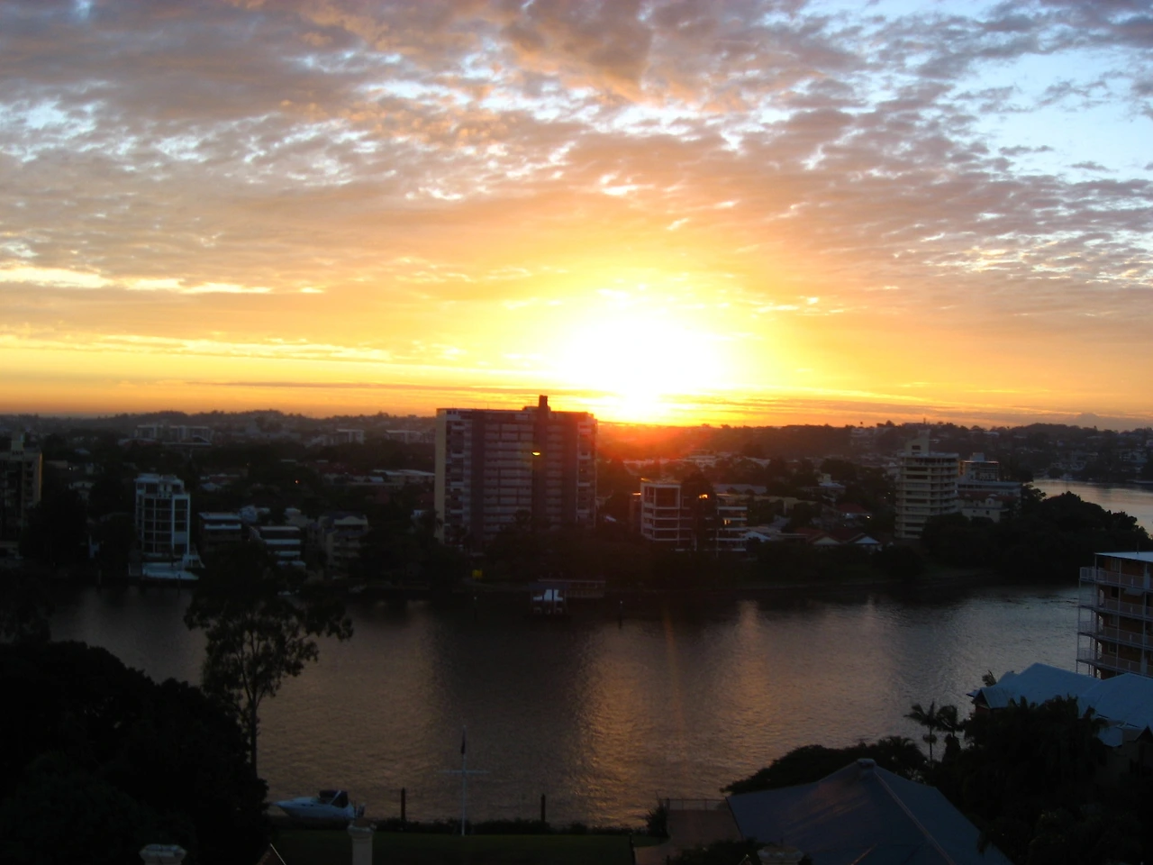 < College 기숙사 방에서 바라본 아침 햇살과 브리즈번 강>