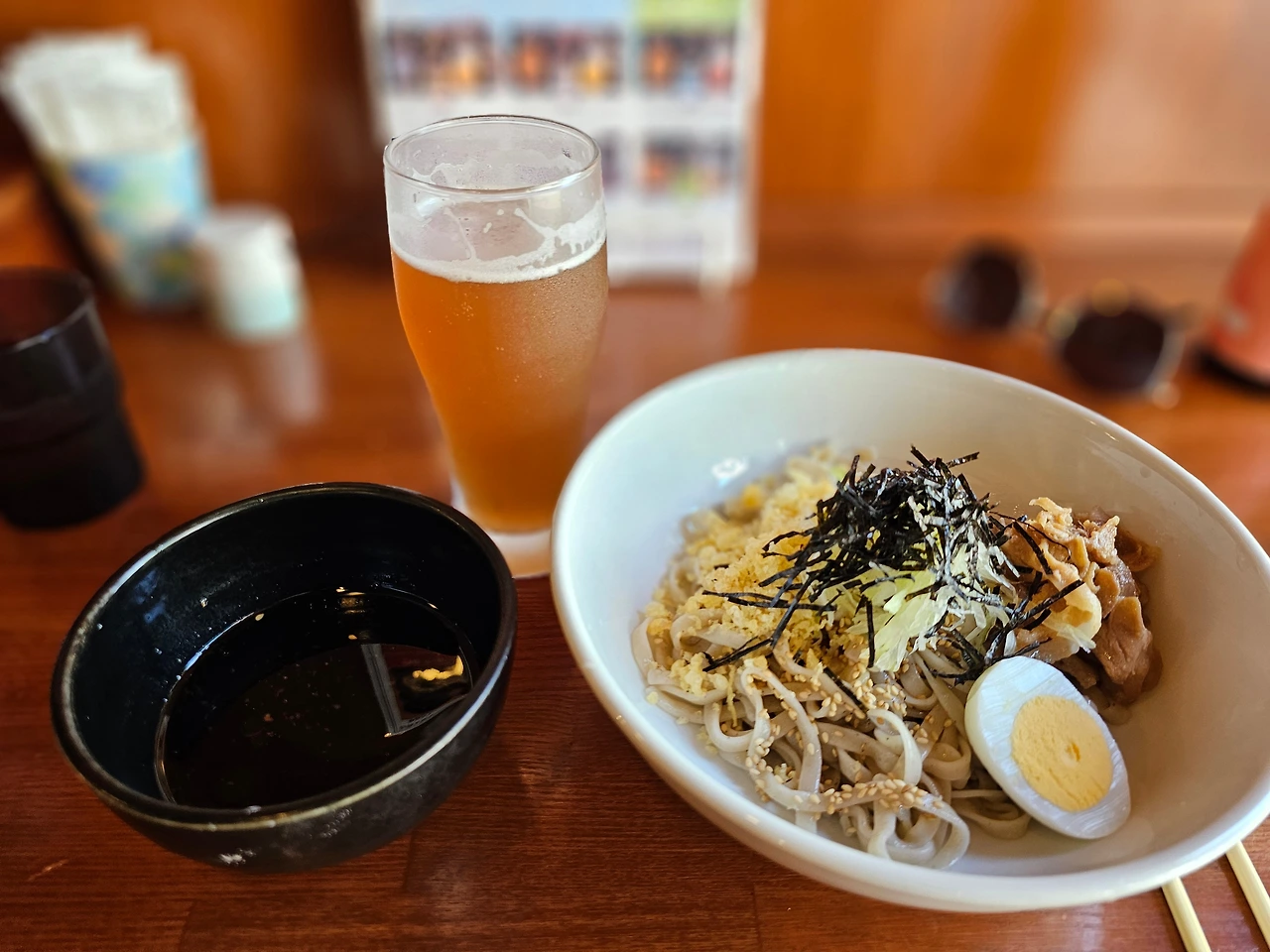 마쓰야마 성(천수각)을 구경하기 위해 케이블카가 운영 중인 곳으로 향했다. 길을 걷다 보니 어느새 점심시간을 알리는 "꼬르륵" 소리가 배에서 알람처럼 울린다. 나는 구글로 근처 소바 집을 찾았고 비빔 소바가 눈에 들어왔다. 무척이나 더웠던 날씨에 시원한 맥주와 함께 먹은 비빔 소바는 정말 꿀맛!