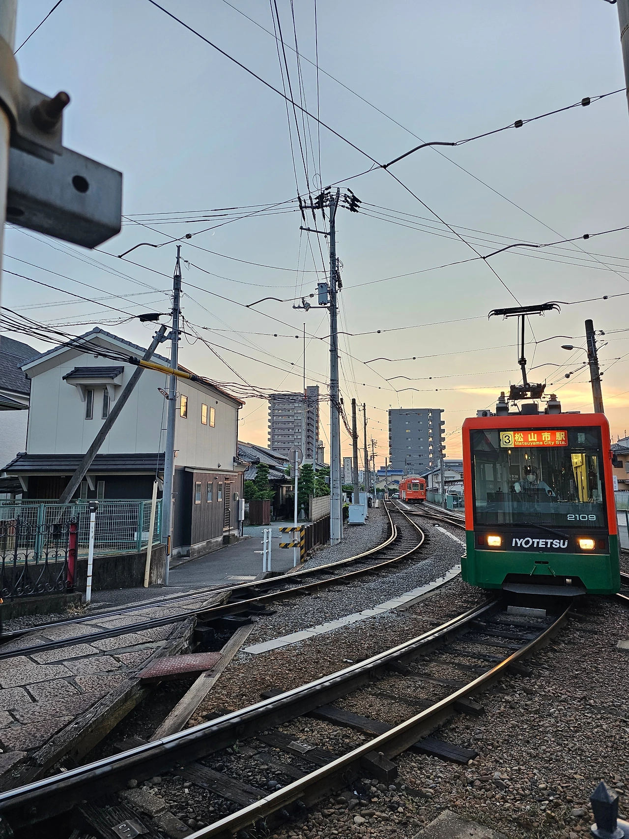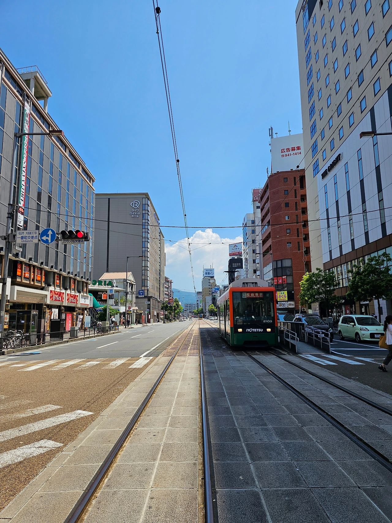 8월의 마쓰야마 시내는 한국만큼이나 무척 더웠다. 사진은 참 이쁘게 잘 나왔는데 당시에는 너무 더워 사진을 찍고도 감상할 겨를이 없었던 것 같다. 마쓰야마 도심 한복판에는 치토세의 트램과 같이 트램이 다닌다. 아마도 많은 사람들이 이용을 하고 있고 많은 블로그에도 트램이 빠지지 않는 것을 보니 주요 교통수단인 것 같다.