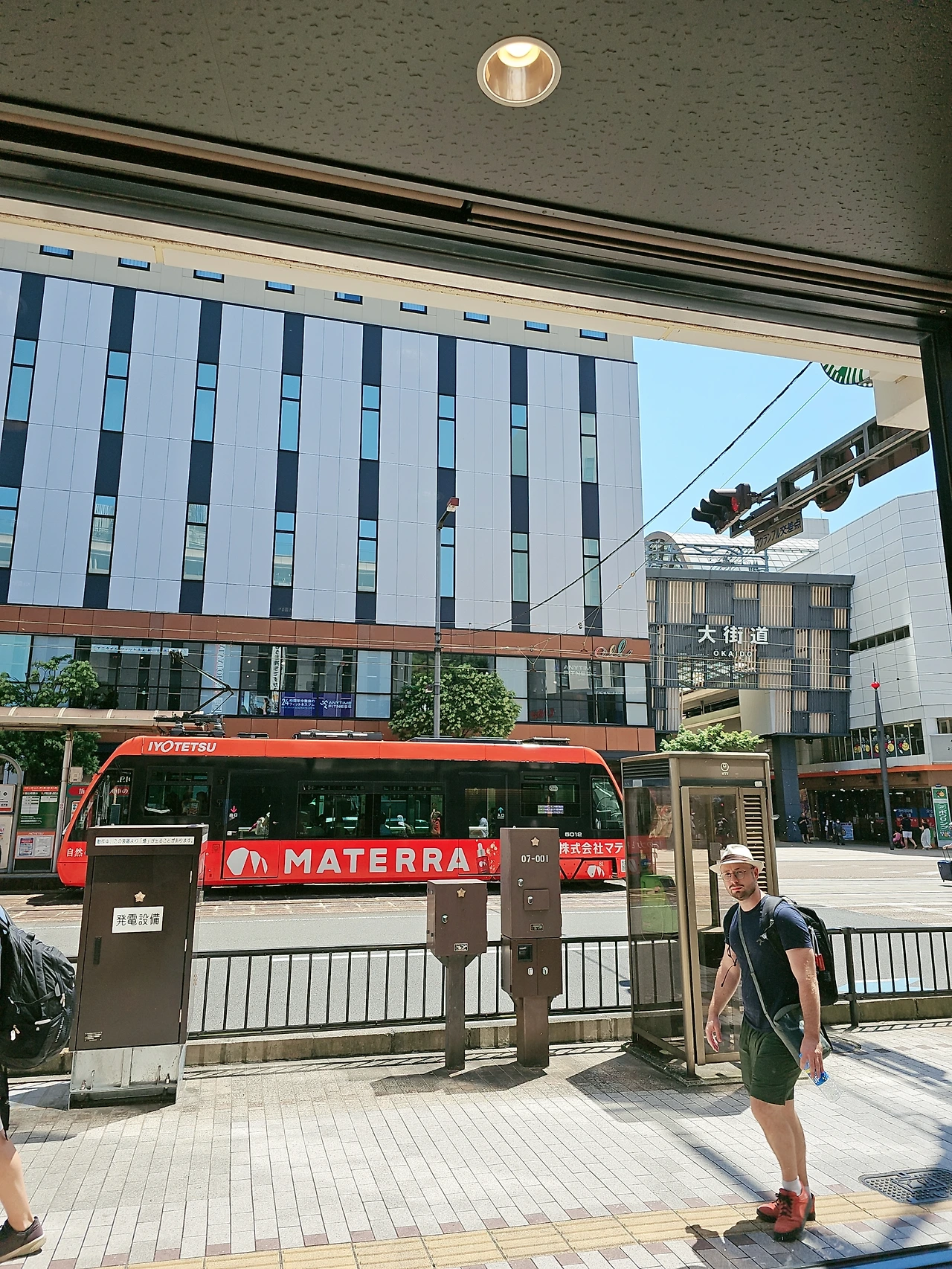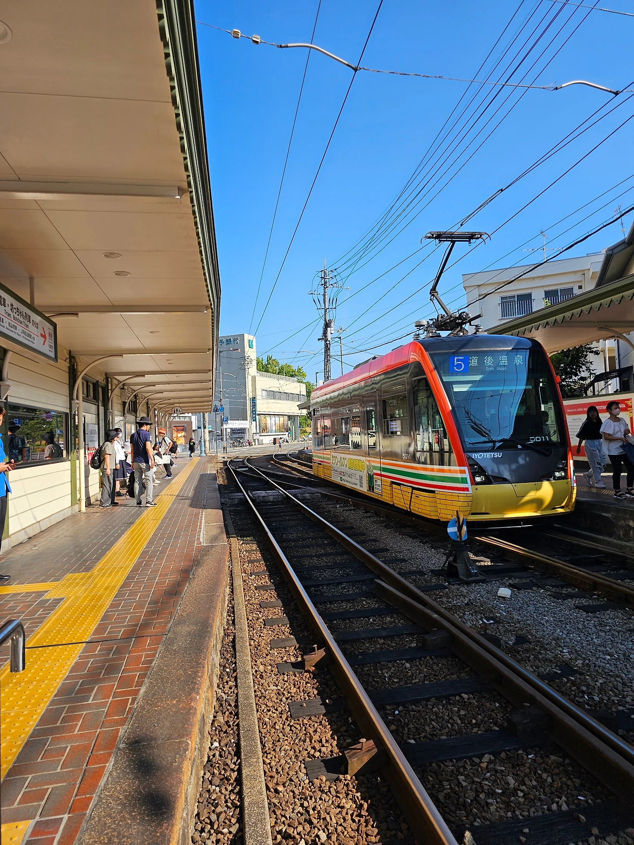 눈앞에 다니는 트램을 타고 도고온천으로 가보기로 했다. 공항에서 받은 도고온천 별관 이용권을 사용해보기도 할 겸 도고온천이 있는 곳으로 향했다.