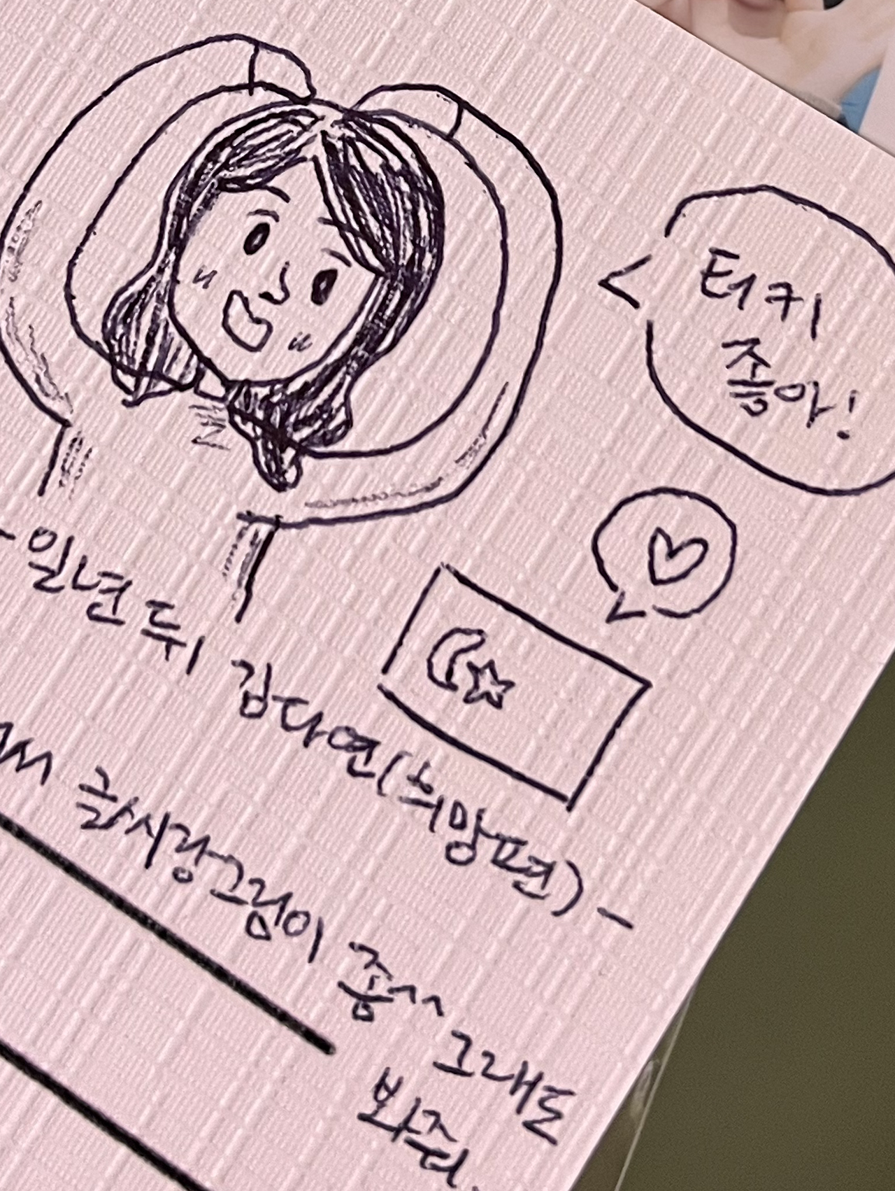 내가 외면하고 있던 점을 시원하게 긁어준 것 같아서 적잖이 놀랐다. 늘 남들에게 내 자신을 소개할 때도 무던하고 잔잔하게 살고 싶은 마음에 '되고 싶은 나'가 ‘진짜 나’라며 꾸준히 말해온 것 같다. 무언가 보고 나면 요동치는 감정들을 기록으로 잘 갈무리하고 싶었던 마음이 컸는데, '늘 기록하고 있는 네가 볼 때마다 참 신기하다.'라는 말을 종종 듣다 보니 내가 유별난 것은 아닐까 싶은 생각을 자주 했다. 동생이 담아낸 나는 이런 사람이었구나. 나를 있는 그대로 바라봐주고 있는 것 같다는 생각이 들어 그 어떤 조언이나 위로보다 큰 힘이 됐다.