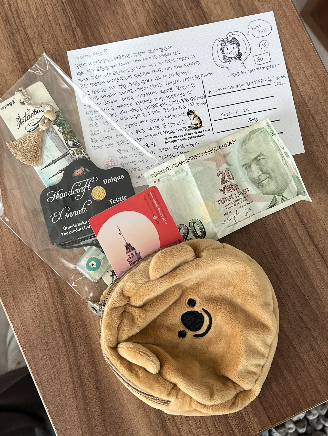 선배는 이스탄불에서 사 온 고양이 엽서에 이렇게 적었다. "내년 상반기는 그냥 경험, 추억을 넘어서 너의 자산이 될 거야. 그 시간을 의미있게 보내려고 애쓰지 않아도 의미 있는 시간이 될 테니까 그냥 네가 최대한 터키를 사랑하다가 왔으면 좋겠어. (...) 네가 뭘 얻을지 너무 기대돼. 터키에서 무슨 일 생기면 꼭 연락하고, 조그만 인맥 총동원해 줄게. 후배의 특권을 누리렴." 이스탄불에서 사용 가능한 교통카드가 담긴 동전지갑부터, 각종 기념품들까지 한아름. 곧 그곳으로 떠나는 사람에게 이런 애정이 뚝뚝 묻어나는 선물을 받게 되다니 아무래도 나, 적지만 그 속에서 단단한 인연을 맺고 살아가는 것 같다.