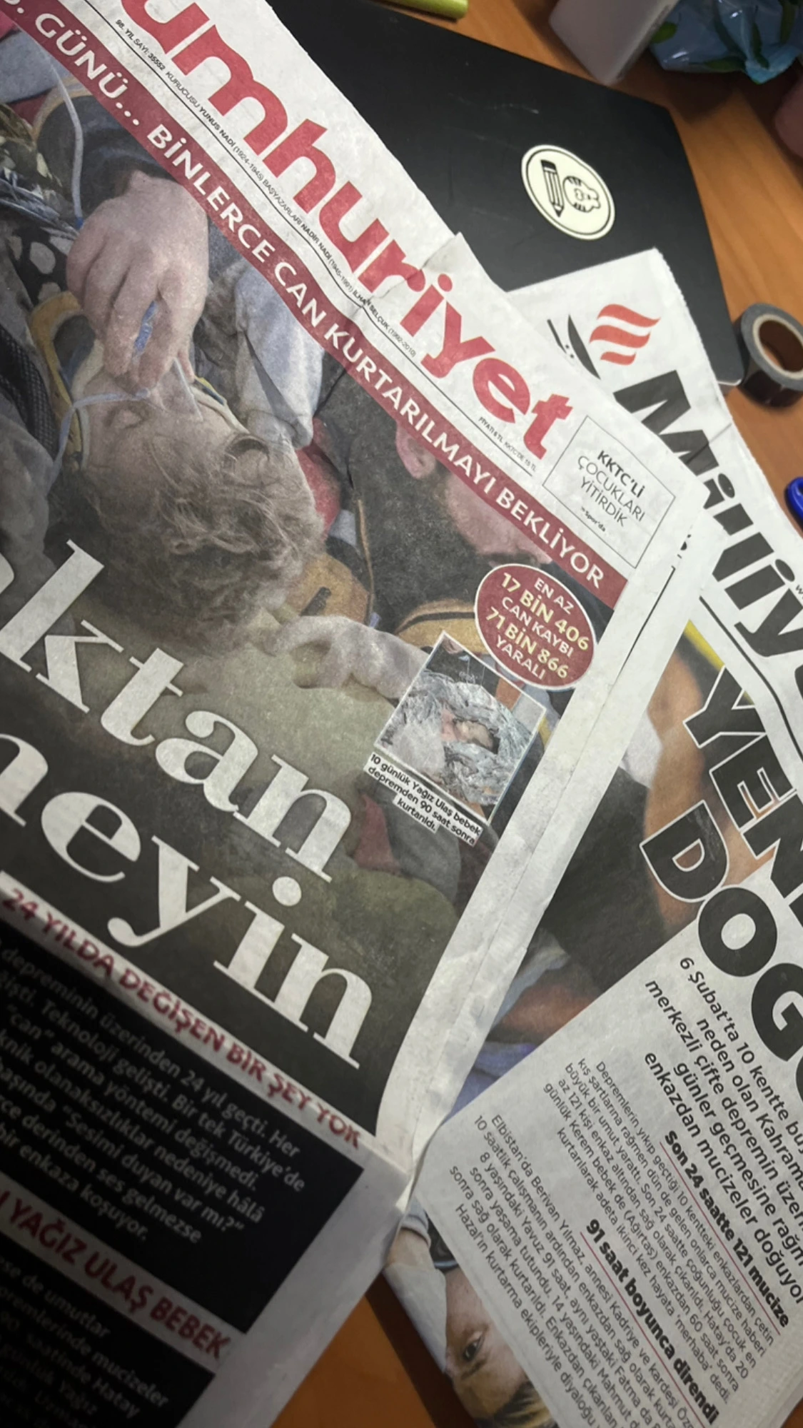시리아 접경 지대인 하타이에서 온 친구 에브랄은 2차 대지진까지 겪고 앙카라로 넘어왔다. 3월 초에 언어 교환 프로그램에서 만난 한국어문학과 친구 에브랄은 현재 나의 가장 친한 튀르키예인 친구가 됐다. 매주 한 번은 만나는데, 그럴 때마다 꼭 나오는 이야기는 하타이 지진. 사람들은 대지진이 2번 일어났다고 말하지만, 사실은 3번이었음을 강조하면서 지진에 관해 이야기를 풀어줬다. 그리고 정확히 세 번의 만남에 걸쳐 에브랄이 말한 대지진을 들을 수 있었다. 며칠간 차에서 생활해야만 했던 나날들과 13일 만에 발견되어 현재는 안전하게 앙카라에 머물고 있는 에브랄의 고양이 미노쉬의 이야기까지. (내가 머물고 있는 기숙사는 지진으로 인해 비대면 수업으로 전환돼 현지 친구들을 고향으로 보내고 피난민들을 들여왔다.) 소중한 사람들을 지진으로 떠나보내고 겪은 숱한 이야기를 그 누구보다 덤덤히 말하길래, 오히려 나와 이스탄불 인근 지역 출신의 잔수가 그 상황을 더욱 속상해했다. 그렇게 이야기할 수 있게 되었을 때까지 얼마나 힘든 시기를 보냈을까 헤아리며 말이다.
