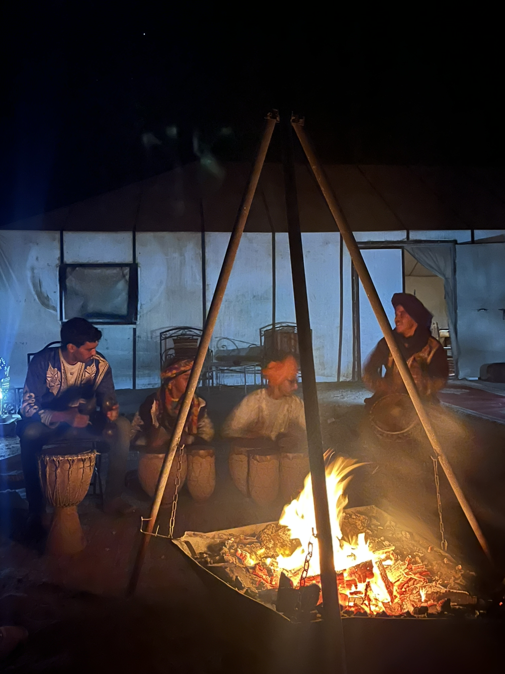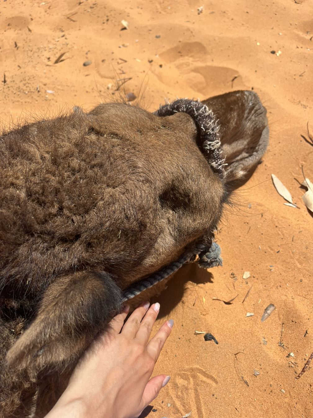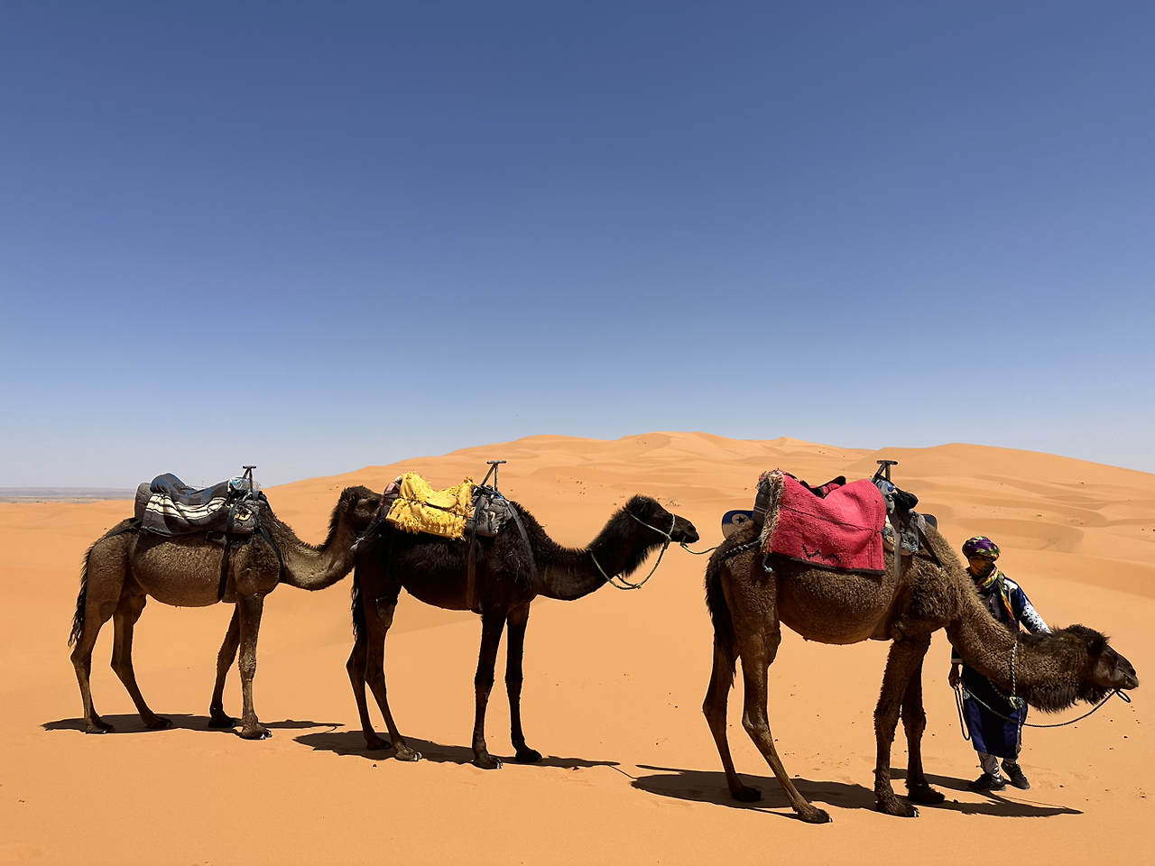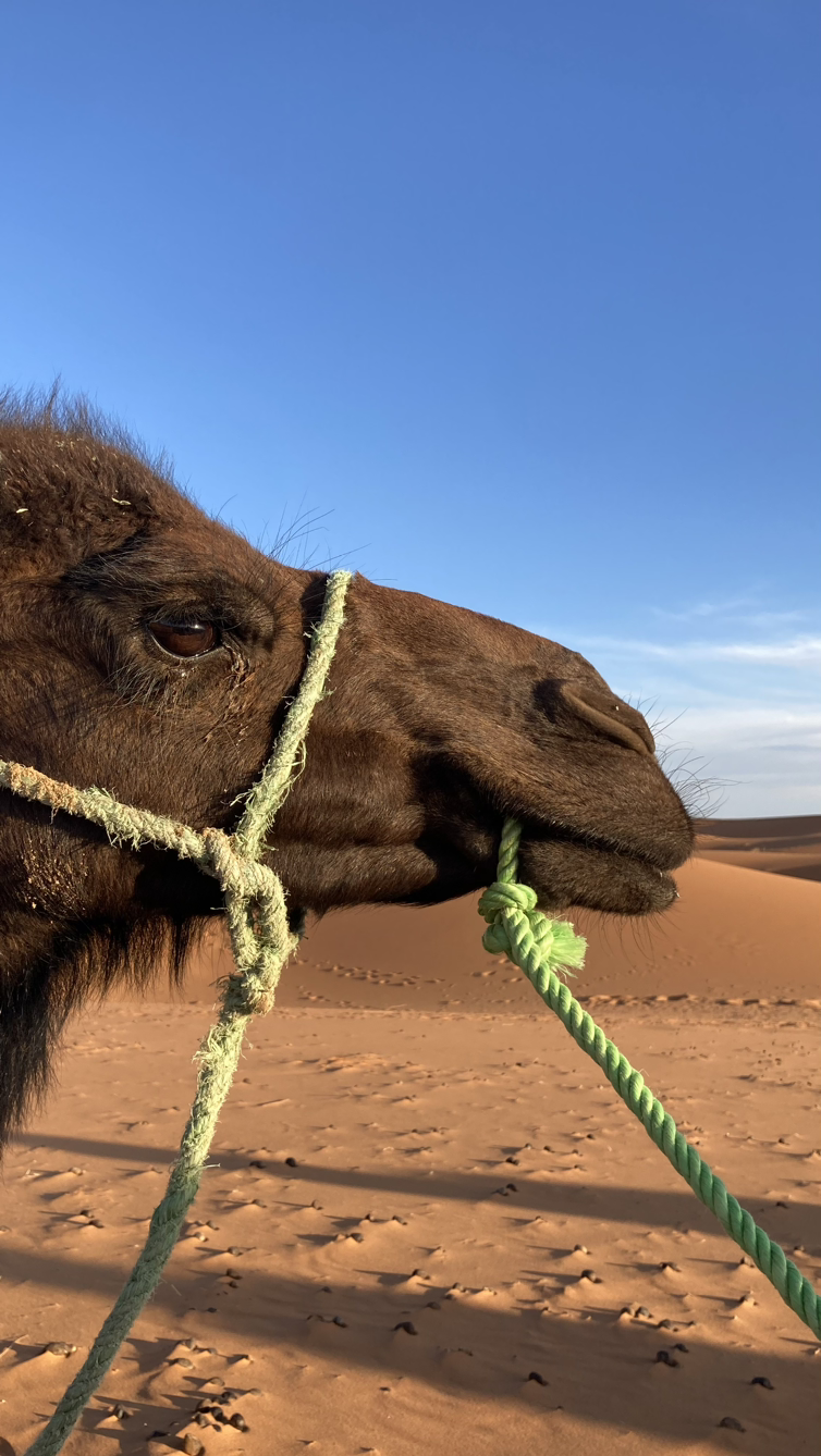 2박 3일간 우리에게 식사를 대접하고, 낙타를 몰고 저녁엔 전통 악기로 연주까지 해주었던 베르베르인 효신. 다시 베이스캠프로 돌아가려고 준비를 할 무렵 오아시스 저 멀리서 매트를 깔고 메카를 향해 기도를 올리고 있었다. 멀찍이서만 보아도 느껴지던 그의 신실함에 기분이 묘했다. 사실 이전에 맛있는 밥을 대접해 줄 무렵, 너무 어려 보이는 나이에 실례는 아닐까 조심스럽게 물어봤다. 혹시 몇 살이냐고. 19살이라는 대답이 정말 많은 생각을 들게 했다. 라마단 기간에 하루종일 금식한 후 가는 모래 입자를 푹푹 밟으며 낙타를 모는 삶은 어떤 느낌일까. 한국인들에겐 이색적인 명소로만, 인생의 버킷리스트로만 남을 이 공간이 누군가에겐 생존을 위해 매일같이 해내는 일이었음을 잊고 싶지 않았다. 이 날은 금식월이 끝나는 라마단 마지막 날이었다. 이프타르를 앞두고 베이스캠프로 돌아가는 길 내내 효신은 아무 말도 하지 않았다. 섣부르게 효신의 삶을 판단하고 싶지 않았기에 그저 지쳐 보이는 뒷모습을 바라봤다. 이방인들을 맞이하며 자신의 문화를 널리 알리는 삶을 살아가는 효신에게 행복하고 따스한 일들이 가득하기를 빌며 그렇게 2박 3일의 사막투어의 일정은 마무리되어 갔다.