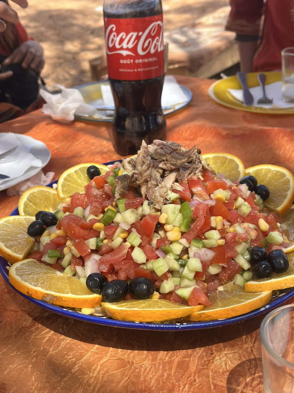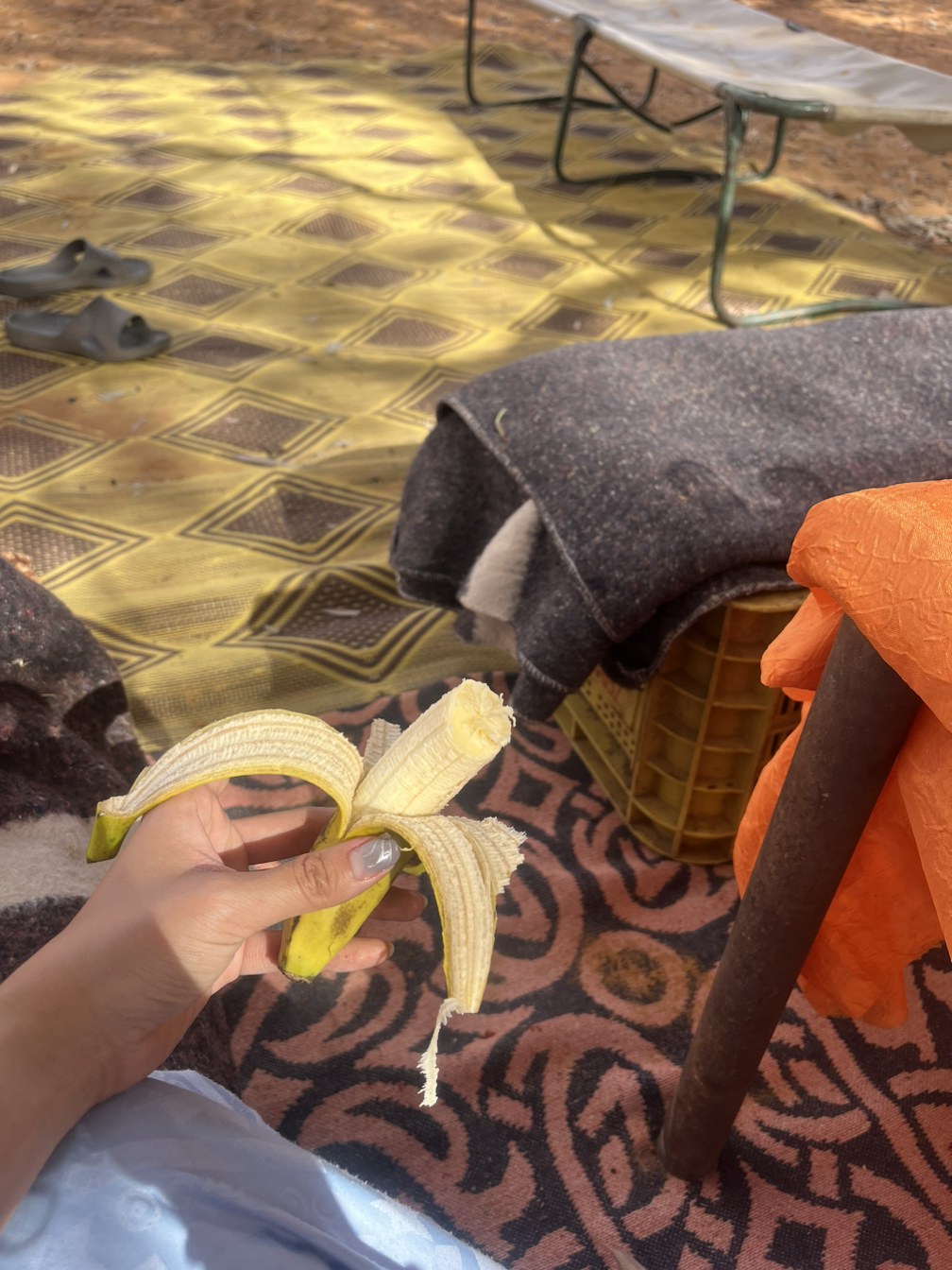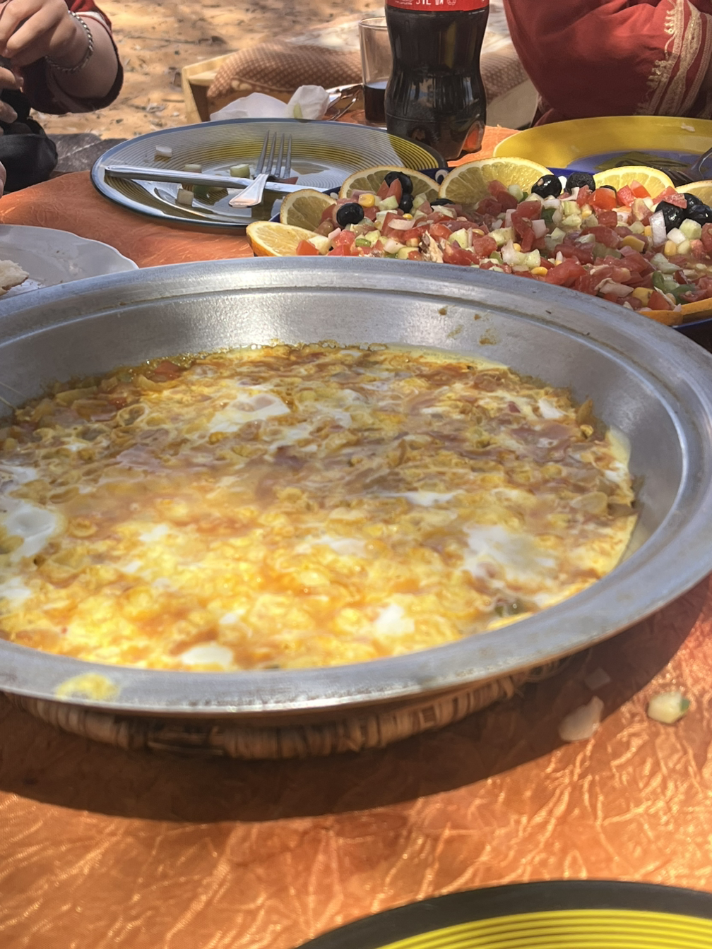 2박 3일간 우리에게 식사를 대접하고, 낙타를 몰고 저녁엔 전통 악기로 연주까지 해주었던 베르베르인 효신. 다시 베이스캠프로 돌아가려고 준비를 할 무렵 오아시스 저 멀리서 매트를 깔고 메카를 향해 기도를 올리고 있었다. 멀찍이서만 보아도 느껴지던 그의 신실함에 기분이 묘했다. 사실 이전에 맛있는 밥을 대접해 줄 무렵, 너무 어려 보이는 나이에 실례는 아닐까 조심스럽게 물어봤다. 혹시 몇 살이냐고. 19살이라는 대답이 정말 많은 생각을 들게 했다. 라마단 기간에 하루종일 금식한 후 가는 모래 입자를 푹푹 밟으며 낙타를 모는 삶은 어떤 느낌일까. 한국인들에겐 이색적인 명소로만, 인생의 버킷리스트로만 남을 이 공간이 누군가에겐 생존을 위해 매일같이 해내는 일이었음을 잊고 싶지 않았다. 이 날은 금식월이 끝나는 라마단 마지막 날이었다. 이프타르를 앞두고 베이스캠프로 돌아가는 길 내내 효신은 아무 말도 하지 않았다. 섣부르게 효신의 삶을 판단하고 싶지 않았기에 그저 지쳐 보이는 뒷모습을 바라봤다. 이방인들을 맞이하며 자신의 문화를 널리 알리는 삶을 살아가는 효신에게 행복하고 따스한 일들이 가득하기를 빌며 그렇게 2박 3일의 사막투어의 일정은 마무리되어 갔다.
