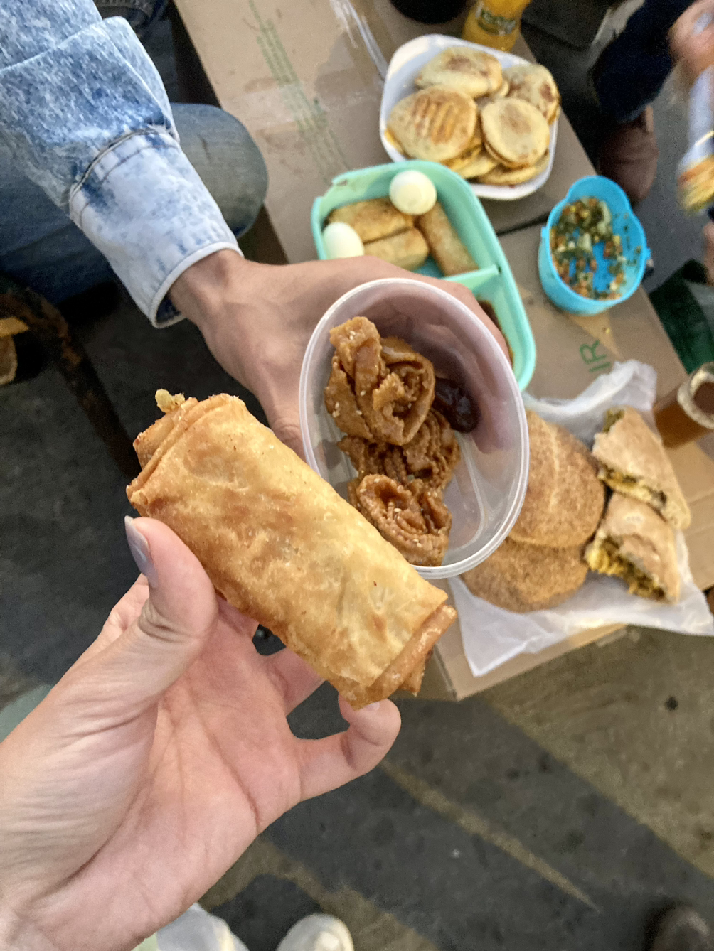 정신 차려보니 나 역시 두 손 한가득 당으로 절여진 과자와 프랑스식 패스츄리를 들고 이프타르를 즐기고 있었다. Y와 나는 그 유명하다는 식당에서 저녁 먹는 것을 포기했다. (그런데 우연찮게도 나중에 확인해 보니 그 식당은 한 달 전에 예약을 했어야만 갈 수 있다고 하더라. 일련의 모든 우연이 행운으로 작동한 느낌...) 끝없이 제공되는 호의에 배가 터질 것 같았기 때문이었다. 우리는 무언의 시그널을 주고받으며 이곳에서 끼니를 해결하기로 결심했다. 마음 놓고 맛있게 먹기 시작했는데, 그 모습이 복스러웠는지 기사님들은 본인들의 의자까지 내주시며 편하게 앉으라고 했다. 내가 낮에 그들의 택시를 탔다면 흥정에 흥정의 연속이었을 텐데, 퍽 재밌었다. 언어 한 마디 통하지도 않는데 그 자리에서 저녁을 무료로 해결했다는 점까지 헛웃음도 나왔다. 그 속에서 나눈 짧은 몇 마디와 환대에서 모로칸들의 다정함을 느낄 수 있었다.