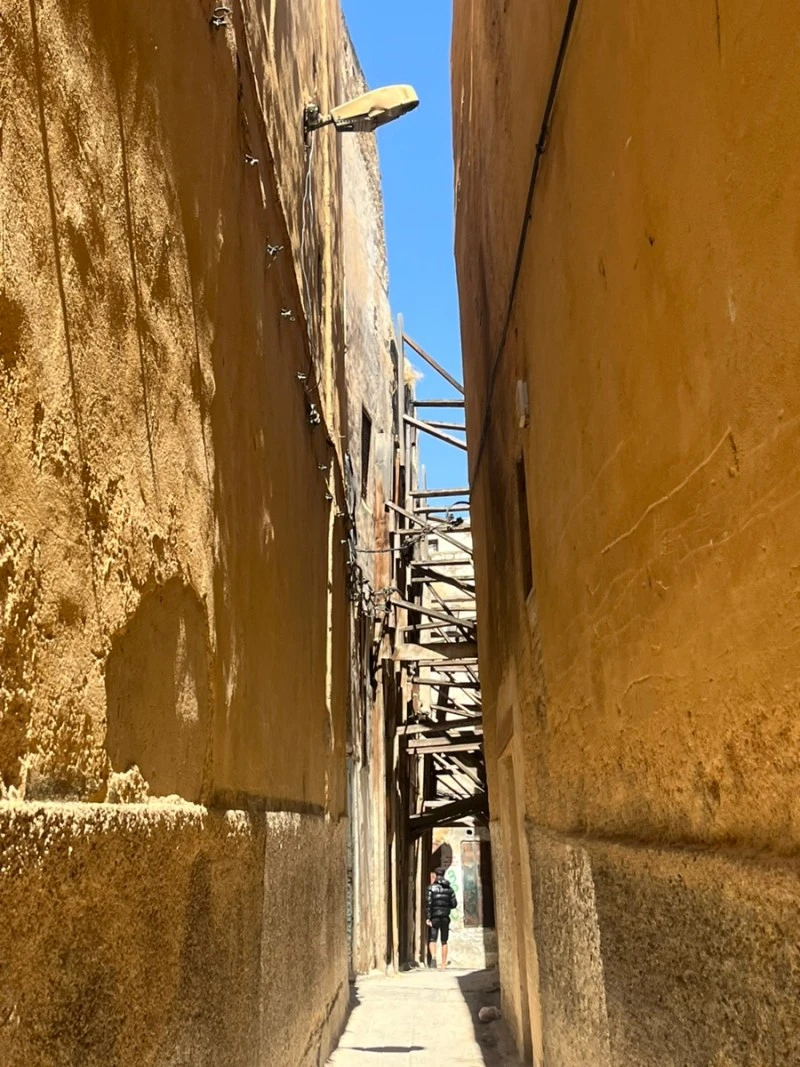 아주 보기 좋게 길을 잘못 들어 5분 거리의 목적지를 30여분 간 헤맸던 당사자로서, 인생 최고의 경험이라고 말하진 못하겠다. 페즈의 메디나는 그 어떤 도시의 메디나들과도 차원이 달랐다. 9000여 개가 넘는 골목을 갖고 있다는 이곳은 오토바이와 같은 자그마한 교통수단조차 지나다닐 수 없을 정도로 비좁았다. 이런 게 길이라고? 싶을 정도로 허리를 숙여야 하는 곳도 길이었다. 그 골목골목엔 기울어지는 건물들을 막기 위해 장작같이 생긴 거친 나무조각들이 틈을 메우고 있었다. 구글 맵도 날 전혀 도와주지 않았고 여행 막바지라 데이터도 다 떨어져 가는 참이었다. 나는 휴대폰을 끄고 벽 곳곳을 짚어가며 길을 찾는 것에만 오로지 집중했다. 메이즈 러너 세트장 안에 들어온 것처럼 이건 일종의 게임이라고 생각했다. 목표는 하나, ‘탈출’!