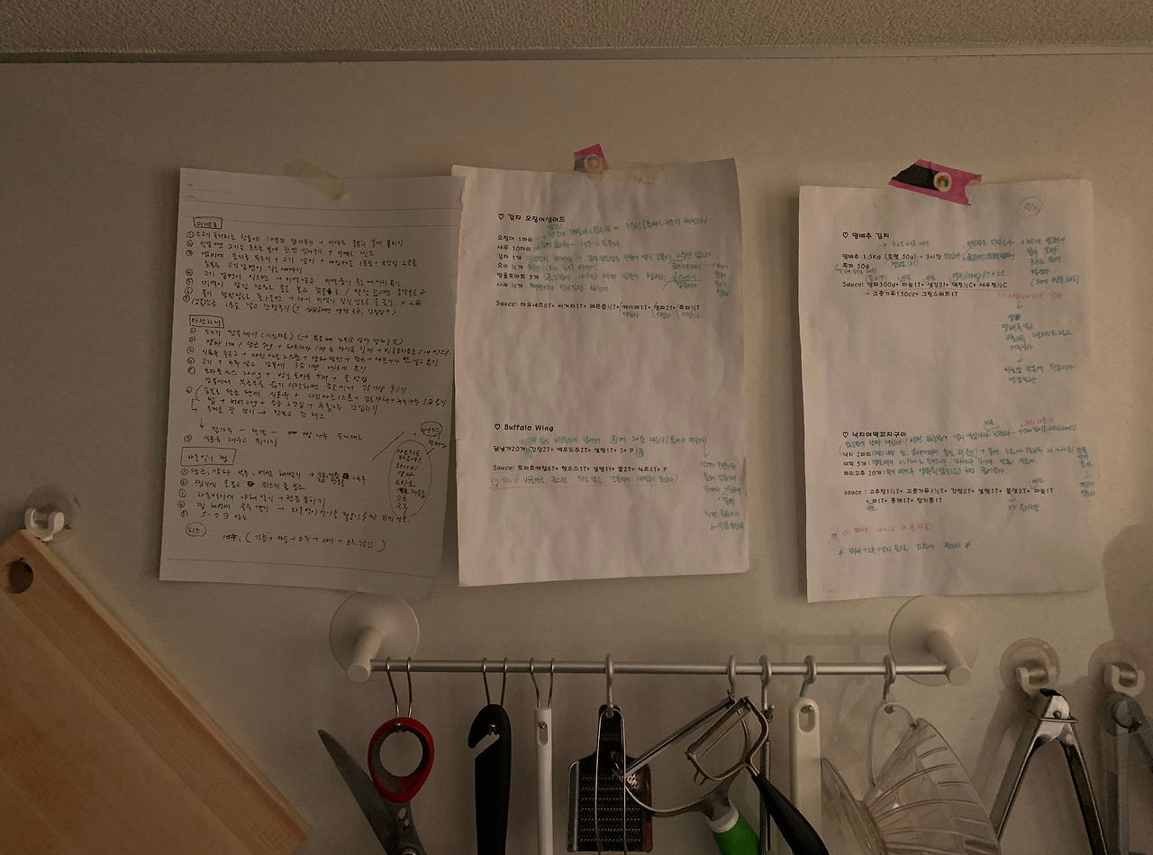 함께 사는 동안은 대부분의 가사는 엄마의 몫이였기에, 생활이 아닌 일탈로 여겨져 좋아하는 줄로만 알았다. 더욱이 서울집의 부엌은 엄마의 공간을 빌려쓴다는 느낌이 들었고 내 마음에 드는 그릇을 꺼낼라치면 "아아, 그거 설거지하기 힘드니까 쓰지말고 여기다 해!"라면서 번번히 엄마의 제재가 들어왔다. 엄마는 성격상 조리 중간 중간 계속해서 싱크대며 주변을 정리해야하고, 밥 먹고 나면 일어나서 바로 설거지를 해야하는데 내가 꾸물거리면 핀잔을 주며 "네가 요리를 하고나면 주방이 엉망이 된다니까" 라면서 나의 조리의 즐거움이나 맛있는 음식을 음미할 시간을 단박에 앗아가셨다. 그렇다보니 엄마의 의뢰(?)가 있지 않는 한 부엌에 서서 무언가를 하는 일은 점차 잦아들기 시작했고 그렇게 부엌에서의 즐거움을 까맣게 잊어버렸다.