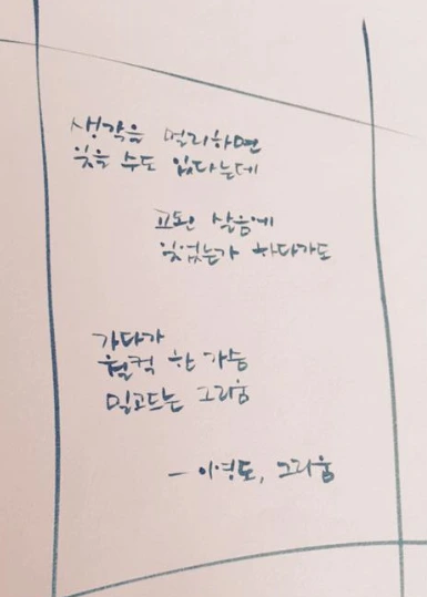 너의 모든 것들이 여기, 내 마음 안에 시간을 넘고 공간을 넘어 들어와 있다.