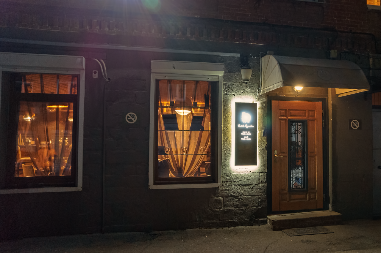 밖으로 나와 지도 상으로 번화가처럼 보이는 곳으로 향했다. 한국에서는 적용이 잘 안 되지만, 구글 지도에서 희미하고 탁한 주황빛(#EEE6DB)으로 색칠된 블록이 있다면 거기가 보통 번화가이거나 상가가 밀집되어 있는 곳이다. 다행히도 러시아는 밤늦게까지 운영하는 식당이 많아서 고를 수 있는 곳은 상당히 많았다. 하지만 난 상당히 망설여졌는데, 러시아에서 영어가 잘 안 통하기 때문에 주문에 상당한 어려움이 있을 것 같았기 때문이다. 미리 조사를 하고 가면 영어 지원 여부를 알고 갈 수 있지만, 거리에서 간판만 보고서는 영어가 먹히는지 알 수 없다.