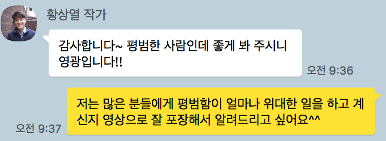 “저는 많은 분들에게 평범함이 얼마나 위대한 일을 하고 계신지 영상으로 잘 포장해서 알려드리고 싶어요^^”