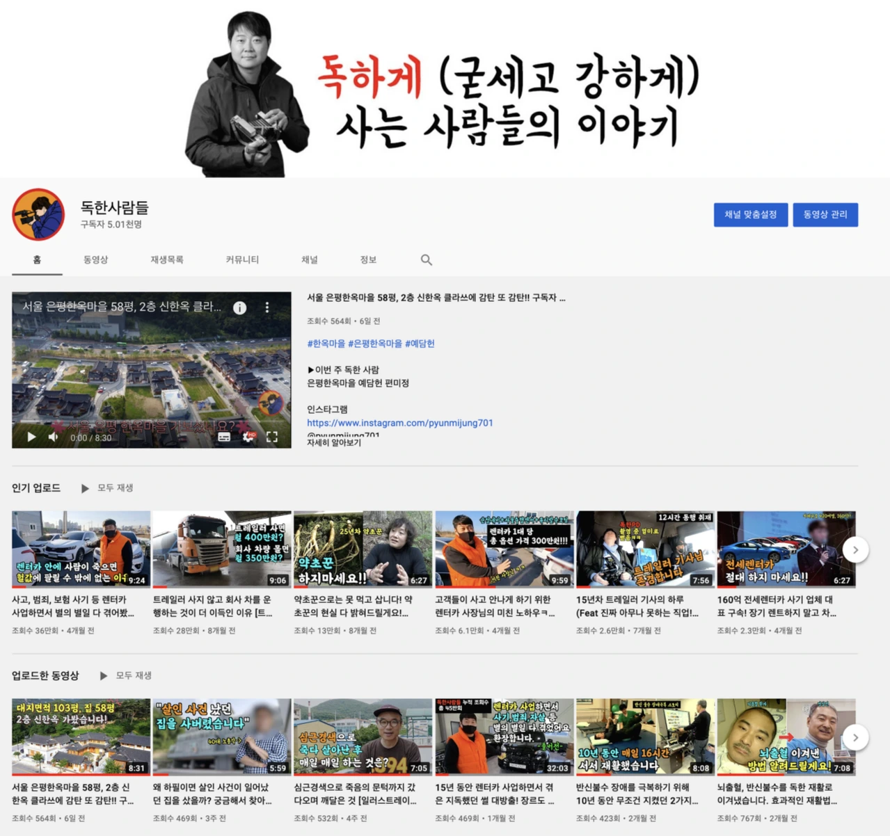 이러한 변화의 흐름 속 밑바탕에는 내가 운영하는 유튜브 채널 <독한사람들>이 있었다.