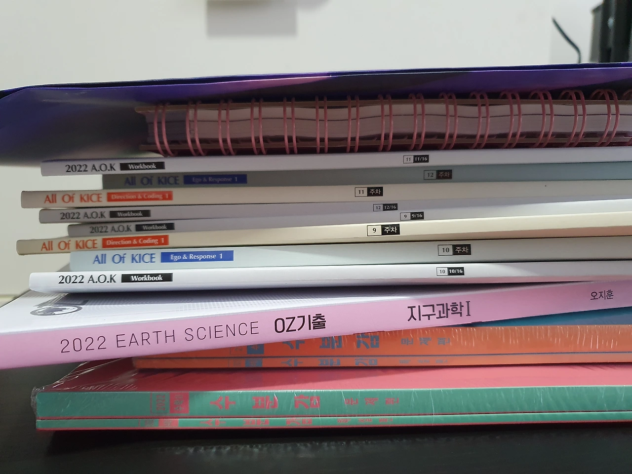 김승리t AoK 9주 차 ~ 12주 차 교재와 워크북과 다음 달부터 공부할 교재들을 받았다.