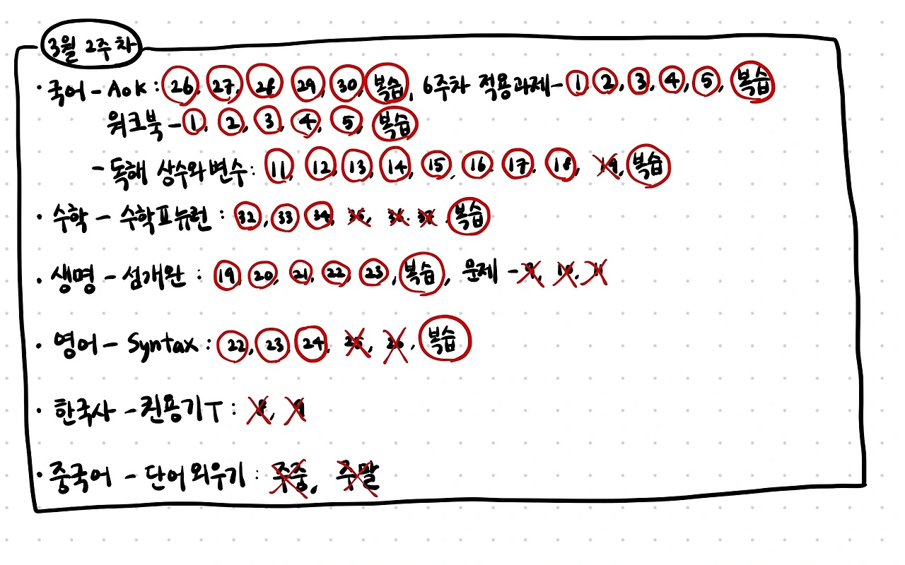 한국사와 중국어 모두 못했다. 이 피곤함이 계속 이어질 거 같지만 다음 주도 화이팅!