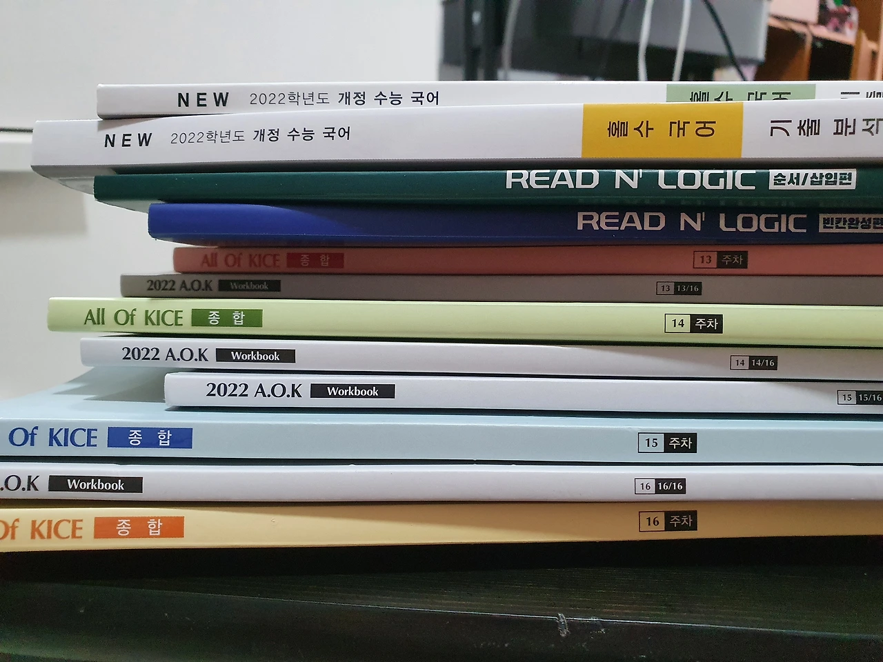 다섯 번째 책배달다섯 번째 책 배달로 김승리t AoK 13~16주 차 교재와 워크북과 교재 패스로 구매한 이명학t Read N' Logic [빈칸완성], [순서/삽입]과 어쩌다 무료로 받은 홀수 국어 교재 문학, 독서 기출 분석만 먼저 받았다.