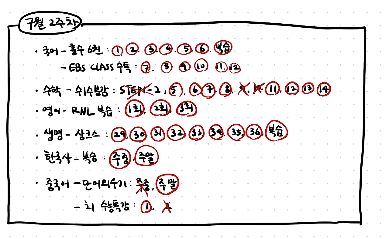 국어 홀수 문제집은 6권 독서를 끝냈다. 오랜만에 독서 문제를 푸려니 또 힘들다… 얼른 홀수 9권까지 마무리하고 수능특강/수능완성 풀어버려야지. 김동욱t EBS CLASS 수특 운문 편은 계획에 맞춰 열심히 들었다. 김동욱t는 설명도 잘해주시고 느긋느긋 하셔서 듣기 좋다! 추천! 현대 시/고전 시가는 거의 끝났고 다음 주부터 산문 편을 하는데 문학은 시가 어려웠던 거라 다음 주부터는 좀 쉬워지지 않을까 싶다.