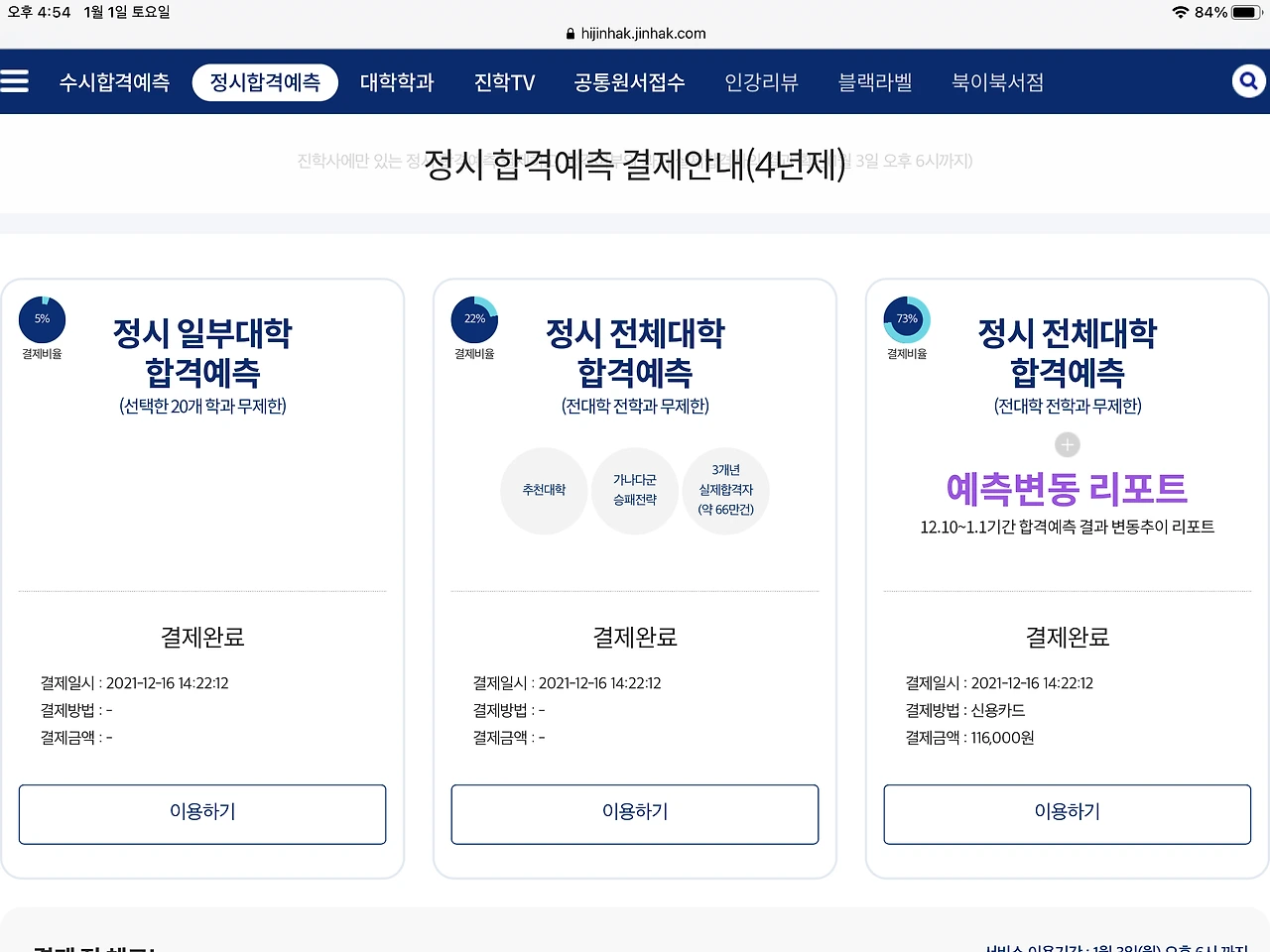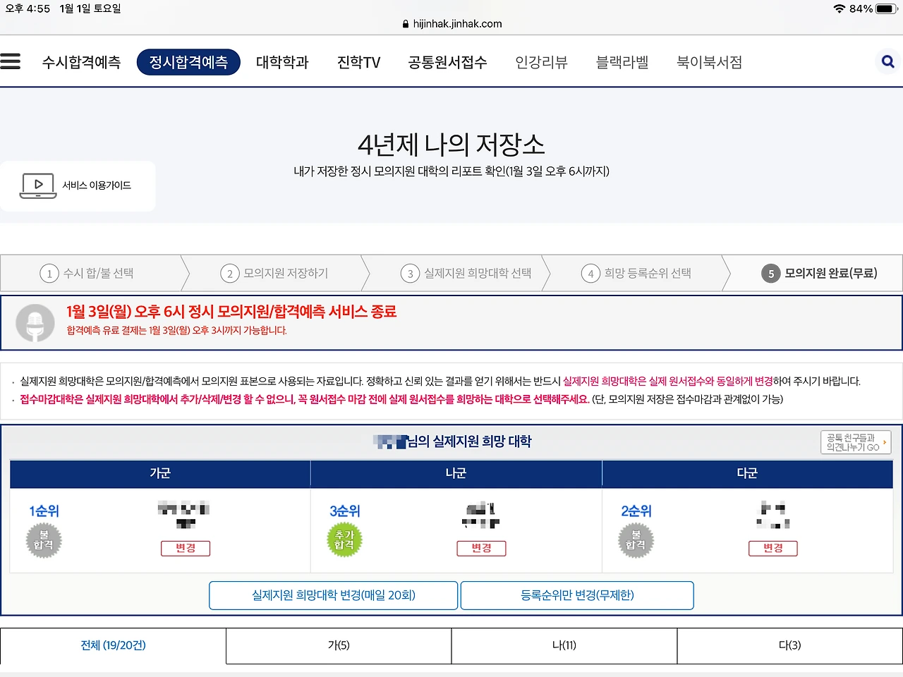 정시 지원하기 앞서 대부분 진학사 정시 예측 프로그램으로 모의지원을 한다고 한다.
