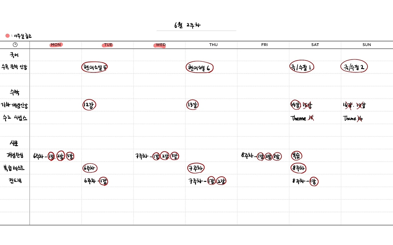 이제 체력 보강도 했으니 다음 주엔 더욱 열심히 힘내자! 6모도 얼른 풀어봐야징