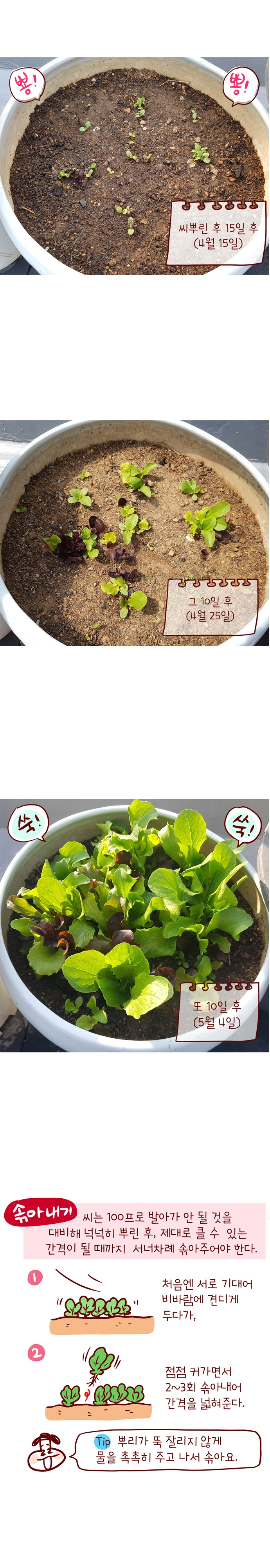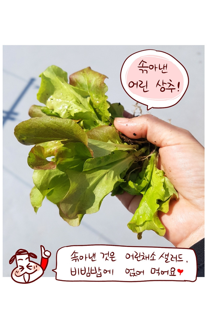 상추는 중간중간 솎아줄수록 뿌리가 뻗을 자리가