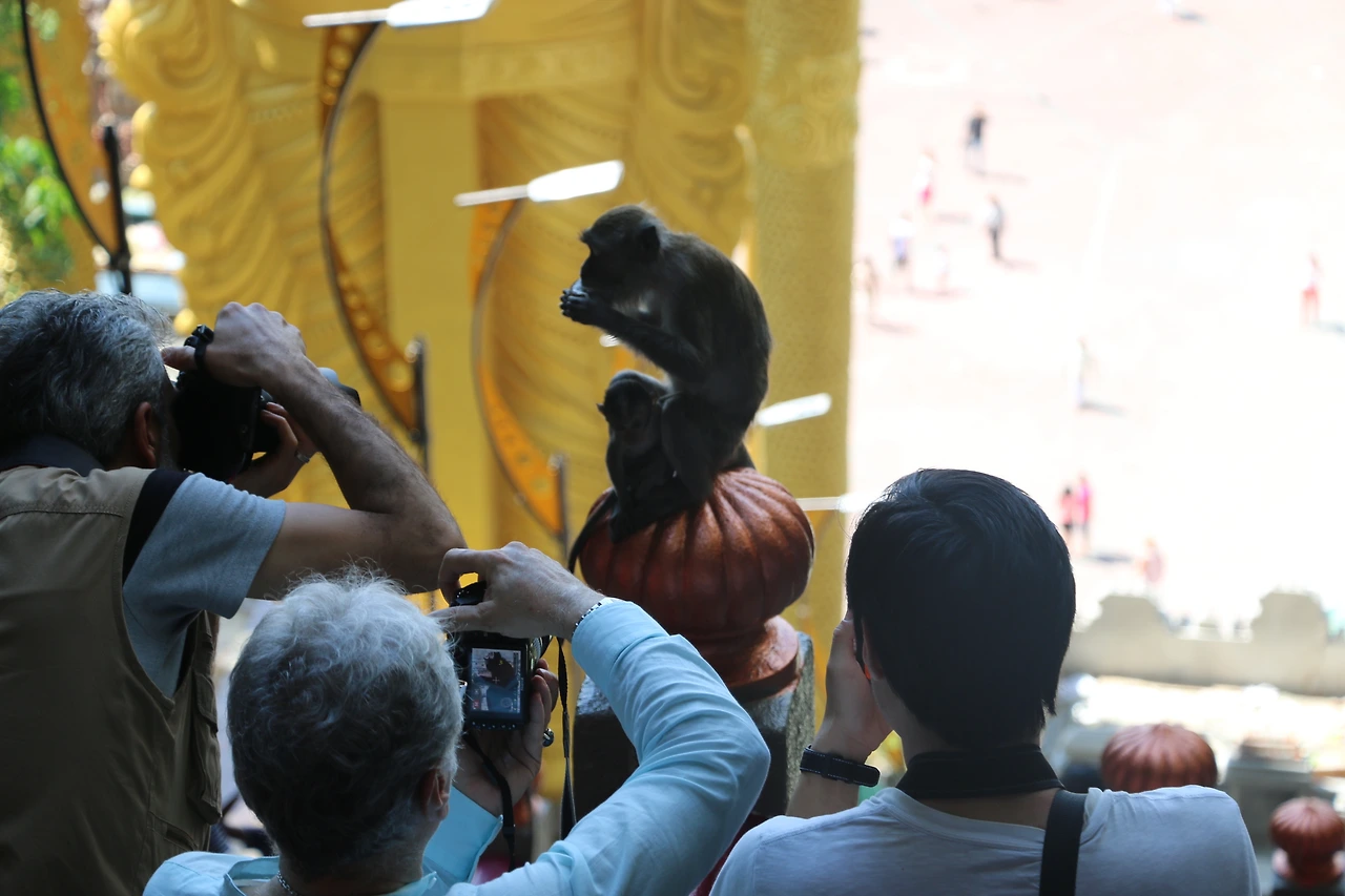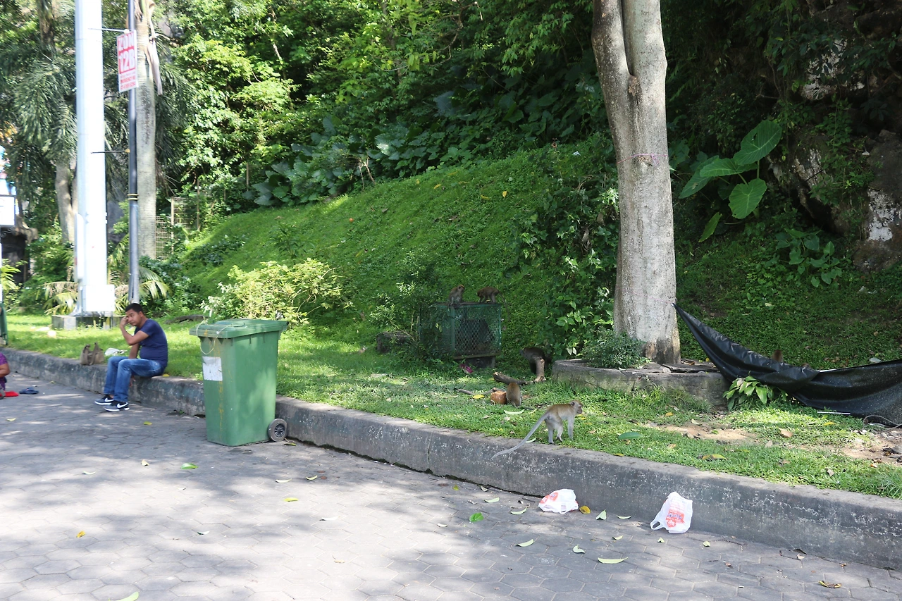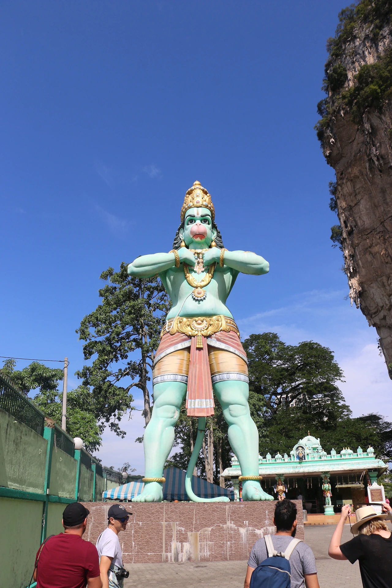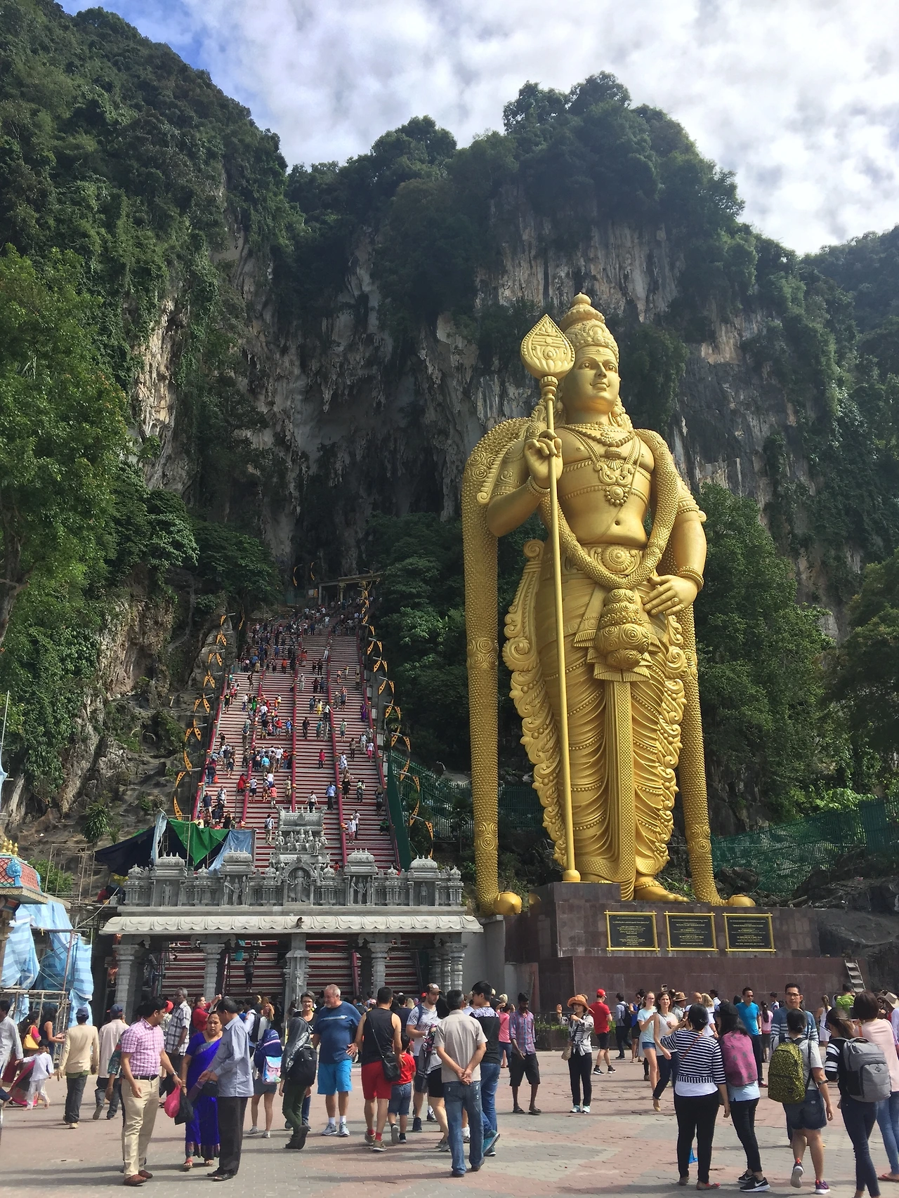 동굴 앞에는 전쟁과 승리의 신 '무루간' 입상이 보였다. 42미터의 거대한 사람의 모습에 머리부터 발끝까지 황금색으로 뒤덮여 있었다. 뒤로는 동굴로 올라가는 272개의 계단이 있고 그 주변에는 더 많은 사람들과 게잡이원숭이, 비둘기가 뒤섞여 혼란스러웠다. 계단에는 관광객들의 과자나 음료수 등을 먹기 위해서 원숭이들이 눈을 부릅떴다. 경쟁이 치열했기에 실제로는 주는 것을 받아먹기보다는 빼앗을 틈을 노렸다. 신이 아닌 거지나 도둑의 모습이었다.