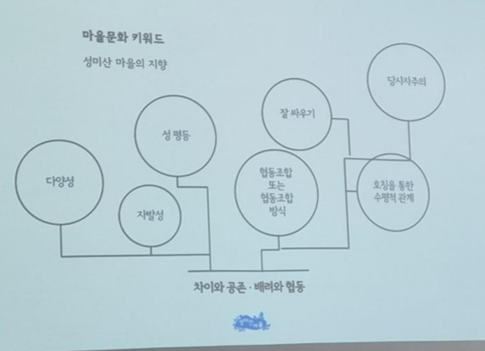 이렇게 느슨한 공동체가 유지되는 원동력은 무엇일까. 길눈이 '사슴'님께 성미산 마을에 대해 설명 하며 대화와 싸움과 술이 많다고 말씀하신 것처럼 서로 끊임없이 대화하고 서로의 의견을 존중하는 것이라 생각한다. 싸움이 많다는 것은 조금 더 편하게 자신의 의견을 표출 할 수 있다는 뜻으로 보였다. 서로를 별명으로 부르며 남녀노소를 떠나 수평적인 관계를 유지하며 의견을 내는데에도 거리낌이 없는 모습에서 건강한 공동체라는 느낌이 들었다. 또한 어떤 활동을 할 때 장을 정하고 이끌려 가는게 아니라 그냥 마을 주민1로 활동에 참여하는 것이 공동체에 임할 때 조금 더 ‘내 일’로 느껴지게 할 것이다.