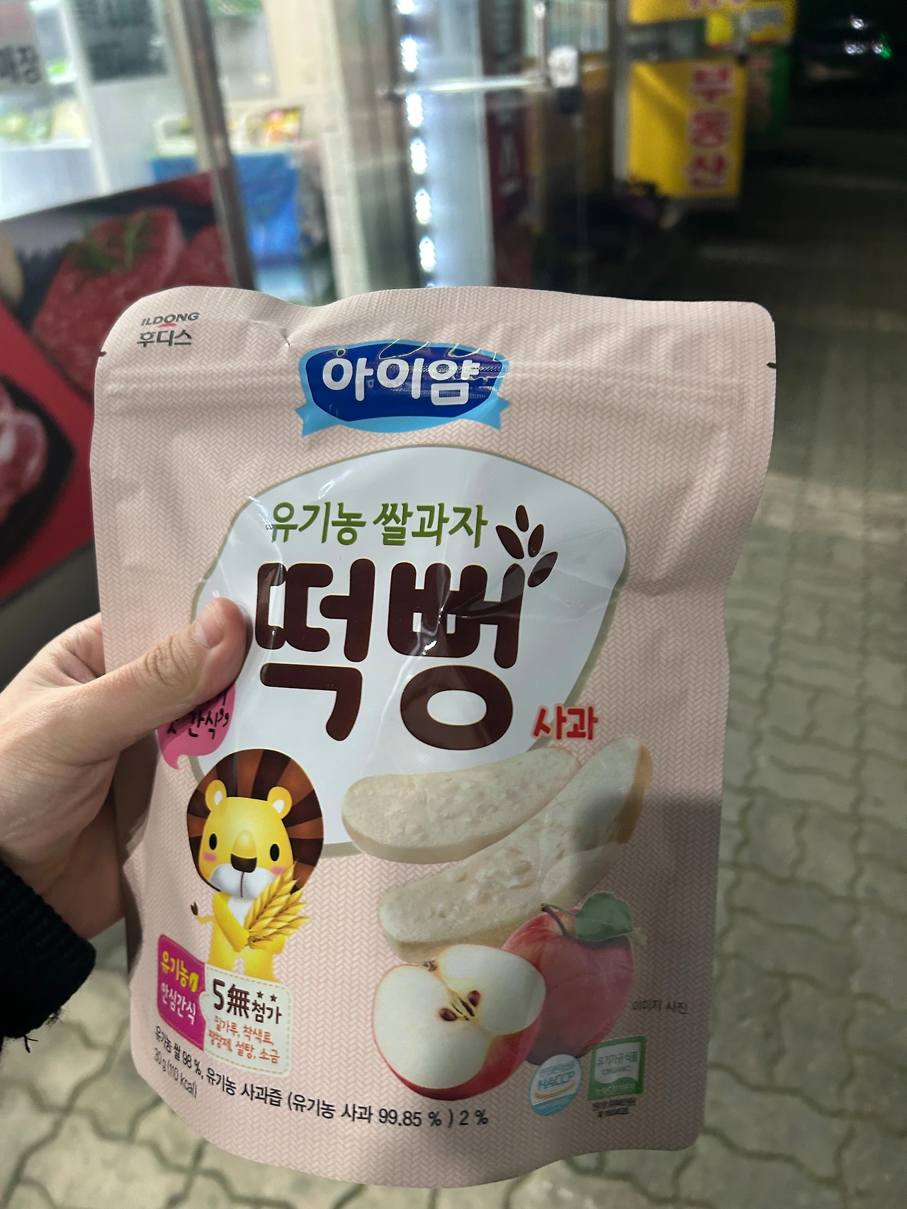 와이프의 육아교육덕에 대충 6개월부터 이유식을 한다는 것을 알고 있었기에, 다음달부터 이유식을 시작할 예정이라고 말씀드리니 계산대 아래에서 주섬주섬 무엇인가를 꺼내신다. 아이 간식 "떡뻥"이었다. 아이가 좀 크면 좋아할 거라고 집에 챙겨가라고 따뜻한 말을 건네주셨고, 난 사진을 찍어 와이프에게 자랑하며 집으로 복귀하였다.