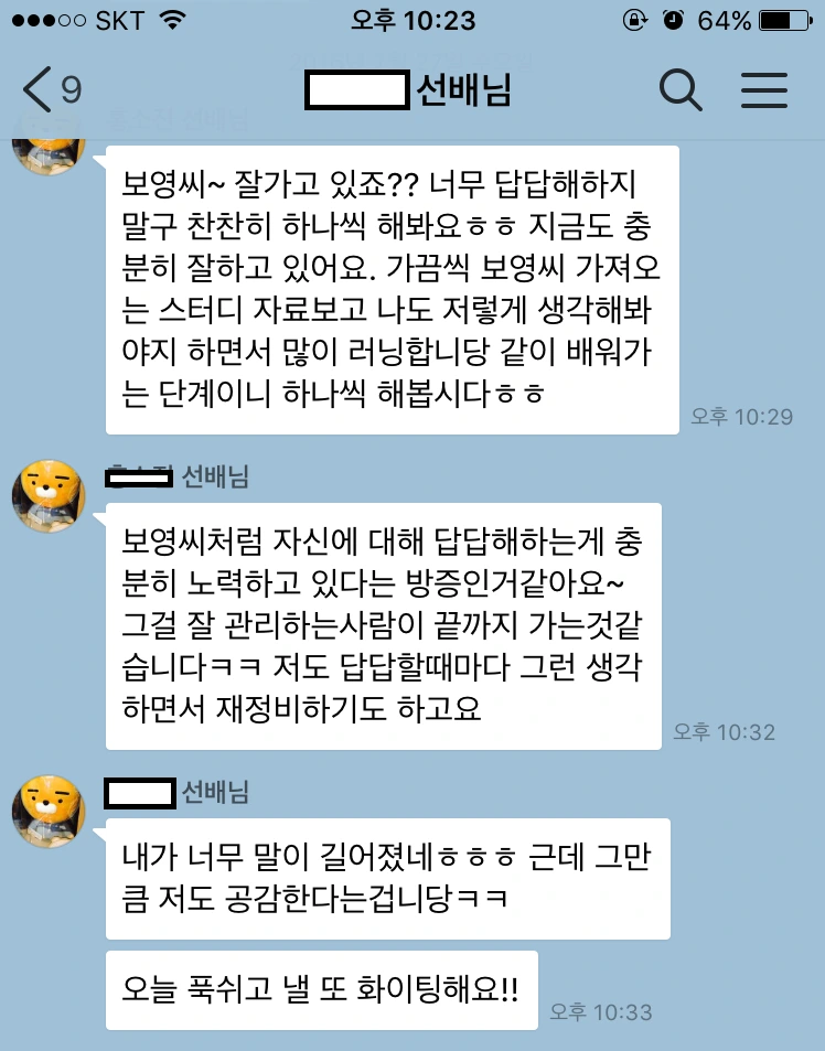 내가 헤맬 때마다 업무의 방향성을 귀띔해줬던 그 선배의 속마음에는 사실 위너의 여유 같은 건 찾아볼 수 없었다. 오히려 보이는 것 이상으로 바쁘고 치열했다. 그럼에도 불구하고 그녀는 먼저 겪은 자로서 뒤에 있는 나를 잊지 않고 그동안 참 고마운 배려를 하고 있었던 거다.
